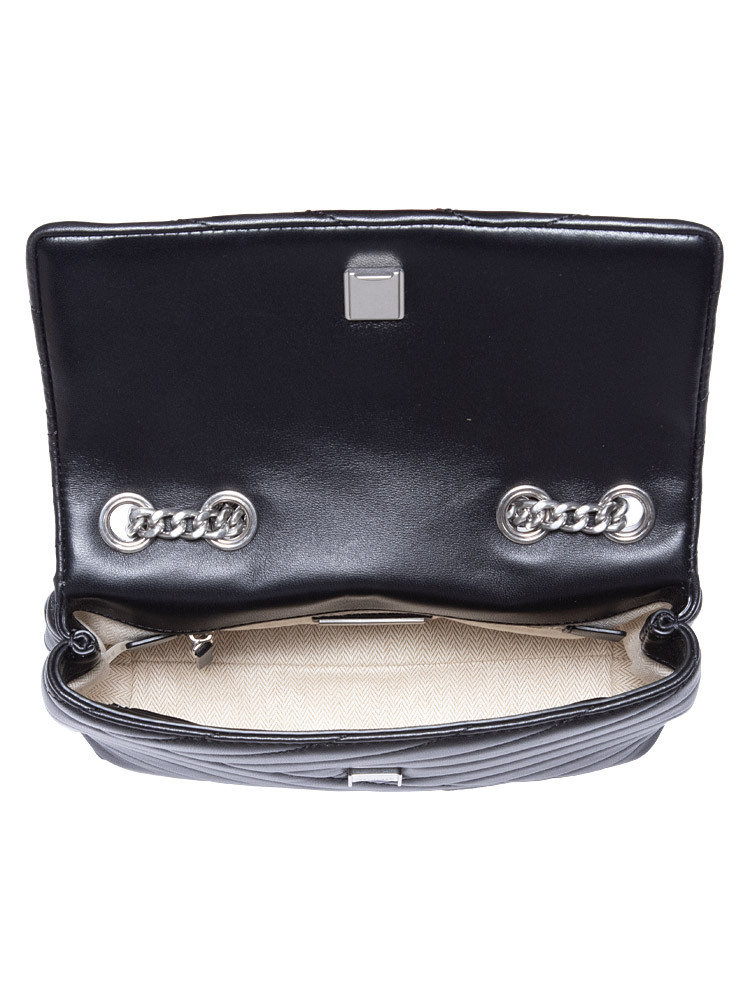 Kira Chevron Small Convertible Shoulder Bag Black Rolled Nickel