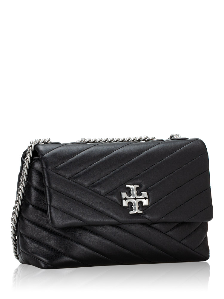 Chevron-quilting on the softest leather that has been stitched and tanned, with a beveled logo in brushed silver. The Kira Flap Shoulder Bag has an adjustable linked chain strap.