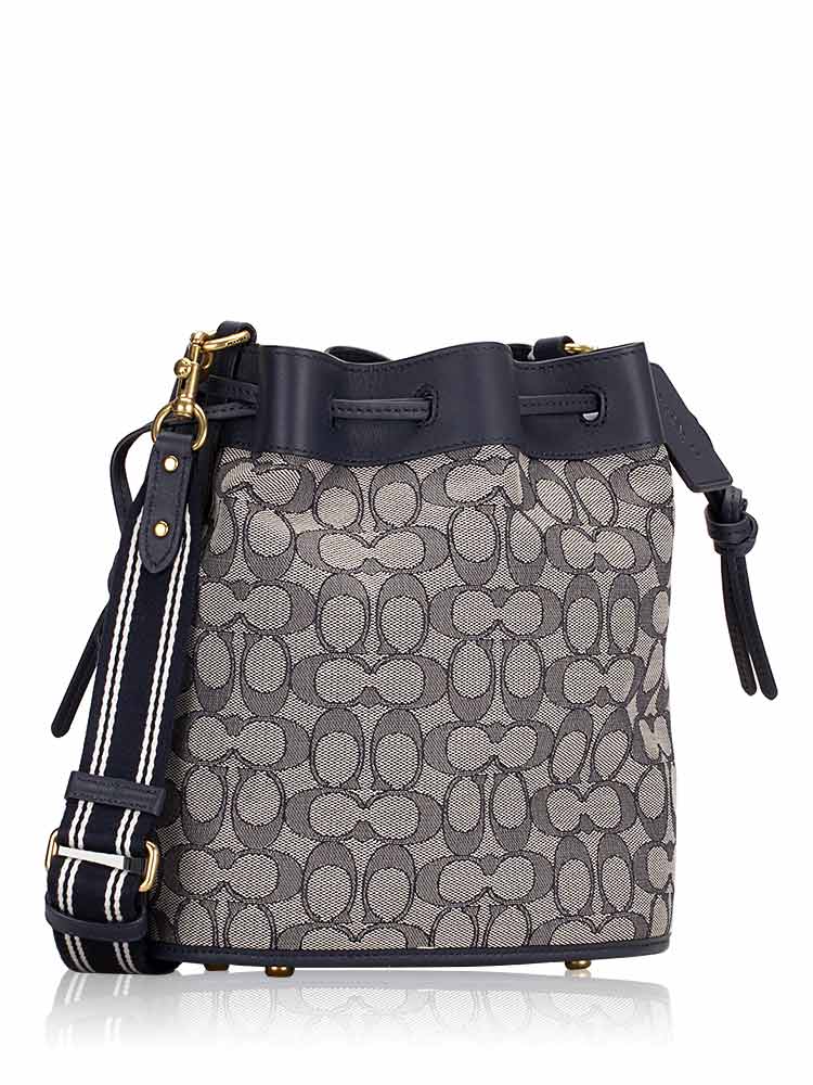 C3853 Signature Jacquard Field Bucket Bag Midnight Navy