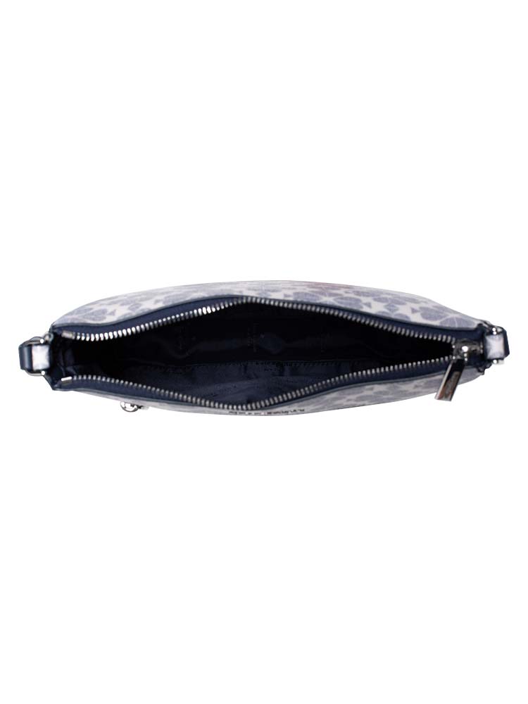 Made of spade flower PVC. The bag features a zip closure that opens to Polyester lining with two slip pockets, exterior one zip pocket at front, adjustable strap.