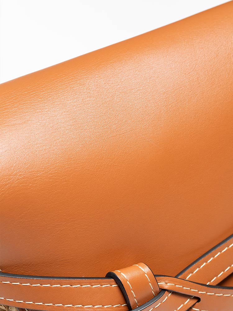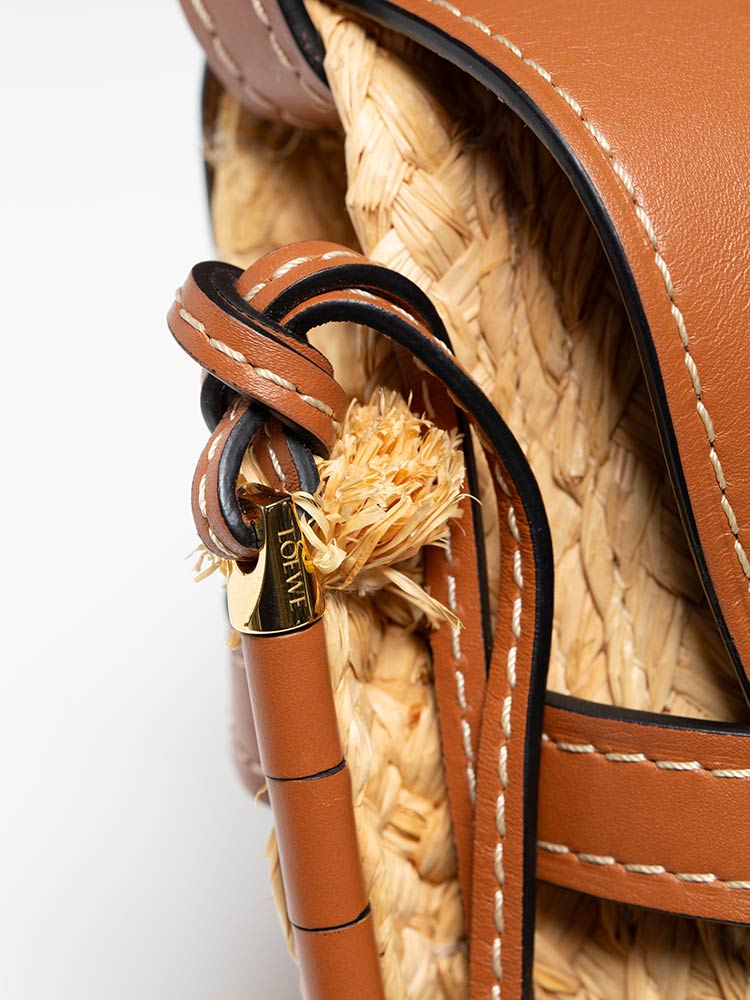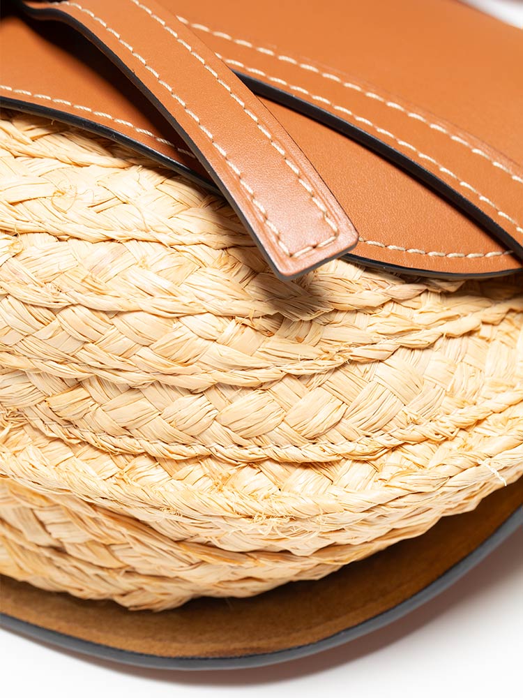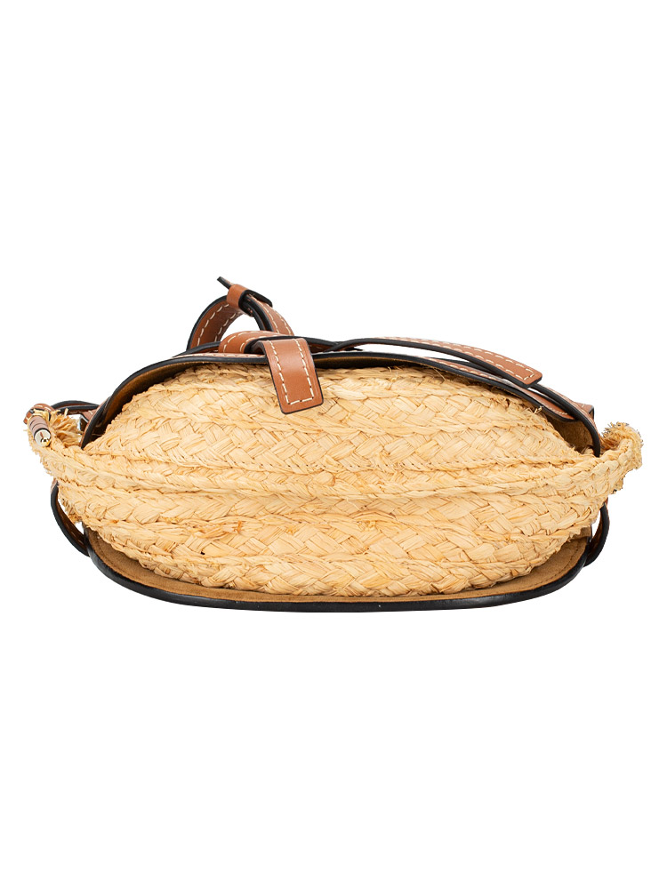 Calfskin Raffia Gate Small Crossbody Natural Tan