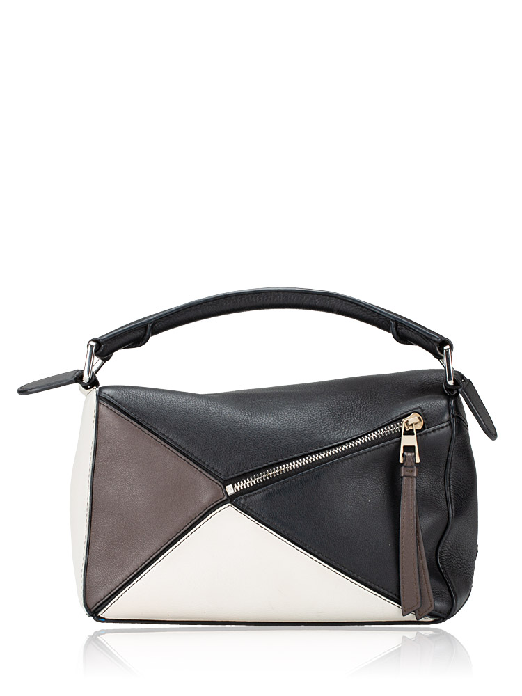 Calfskin Small Puzzle Bag Brunette Soft White Black