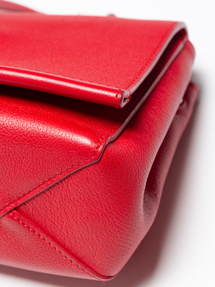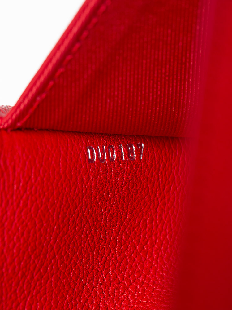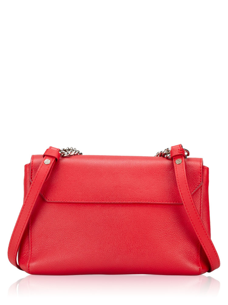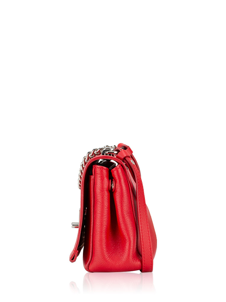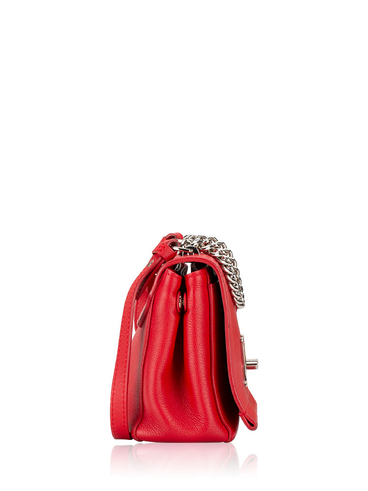 This bag is crafted of calfskin material. It features an optional shoulder strap with a leather pad, a silver chain link handle and a silver LV closure on the front flap. The flap opens to a front pocket and a fabric interior.
