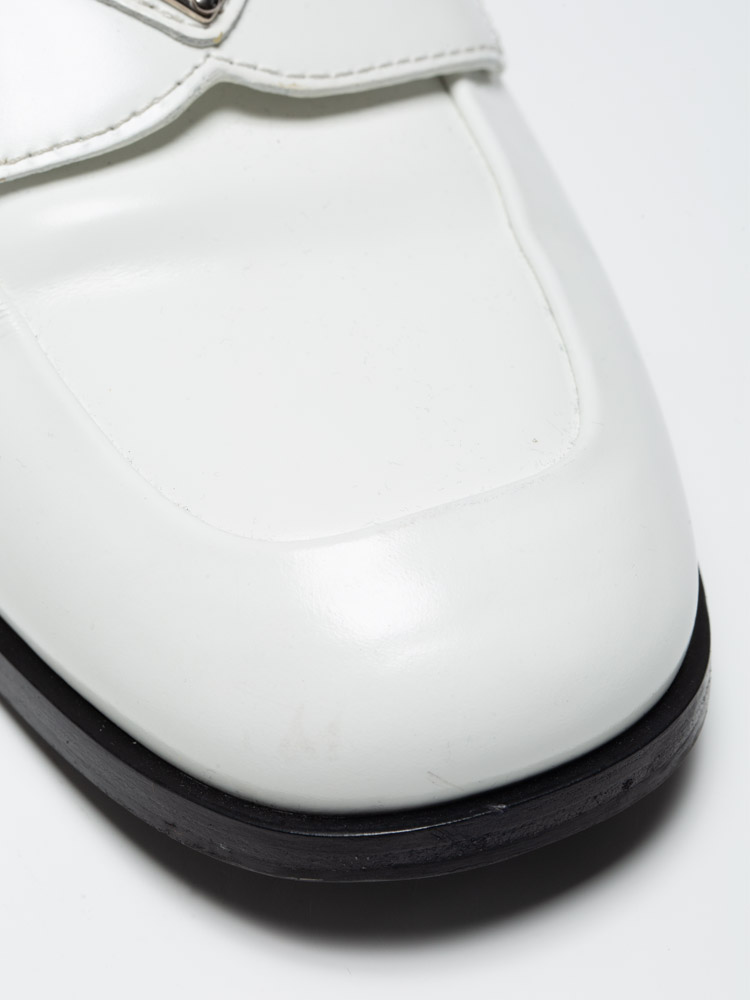 1D902M Spazzolato Triangle 30mm Loafers Bianco Sz 38