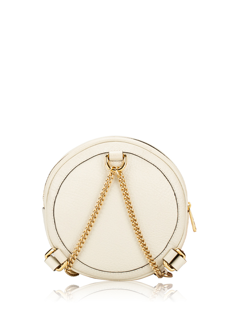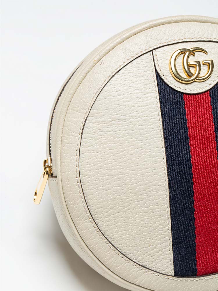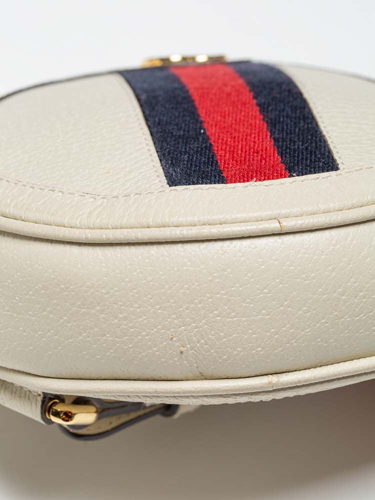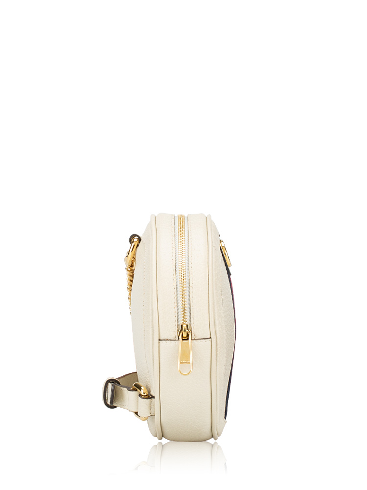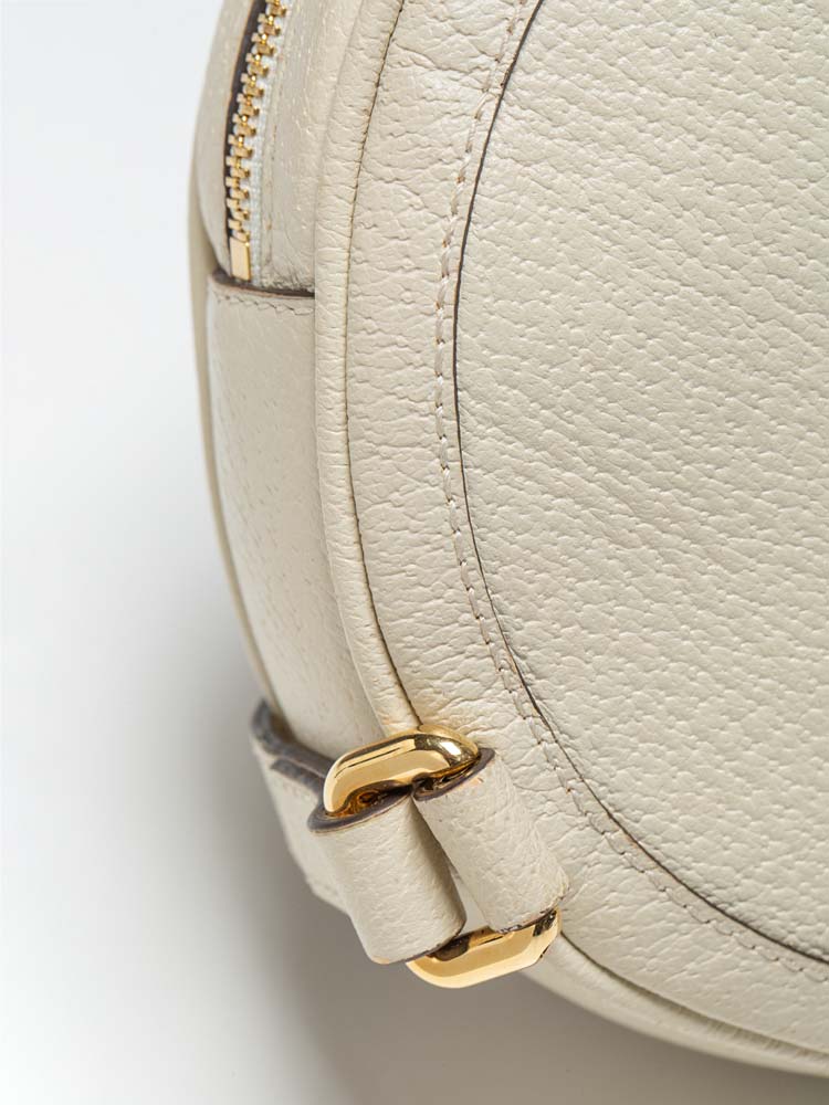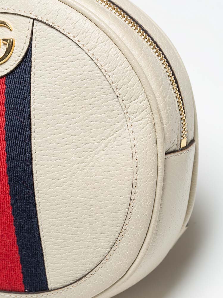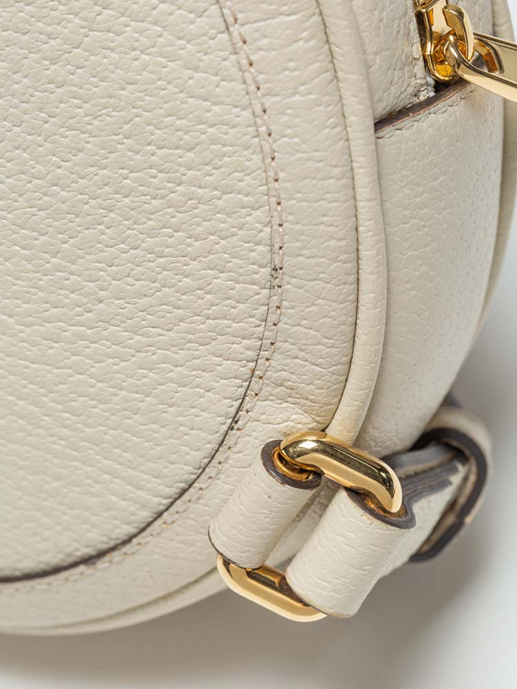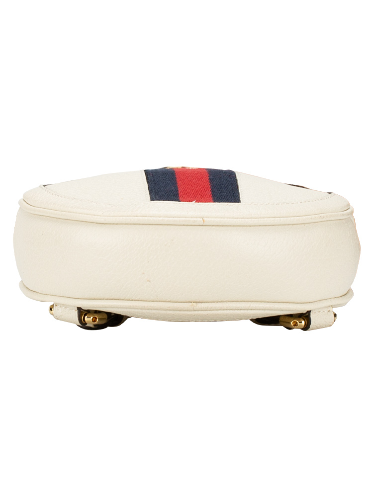 Textured Calfskin Web Ophidia Round Mini Backpack Mystic White