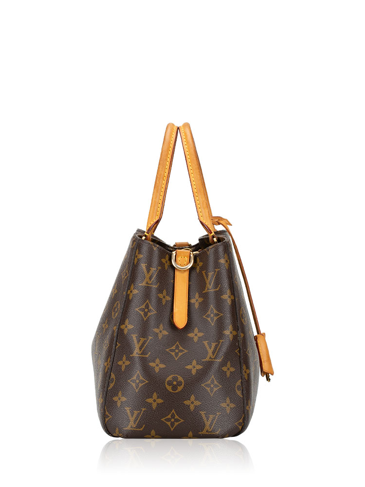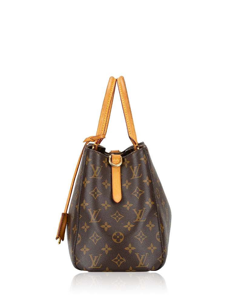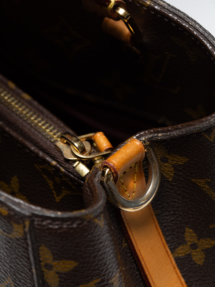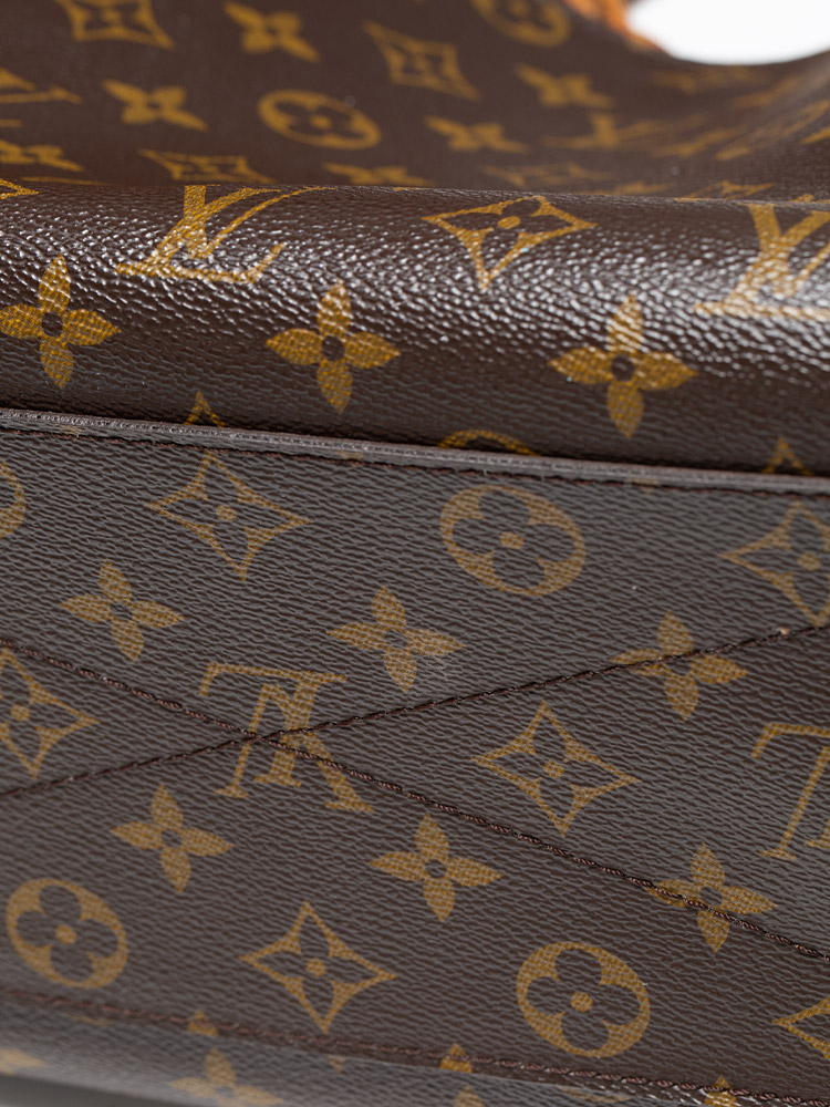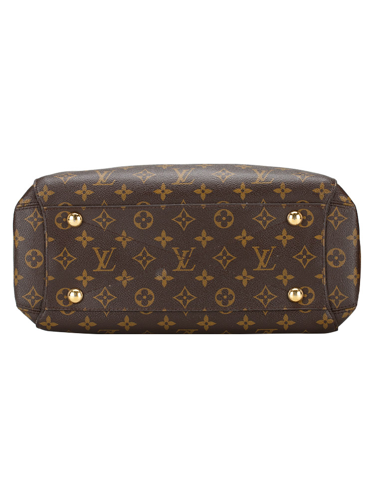 This bag is crafted of Louis Vuitton Monogram coated canvas. It features vachetta trim, double top handles, and an optional shoulder strap. The bag opens to a microfiber lining with slip pockets and centered zipper compartment.
