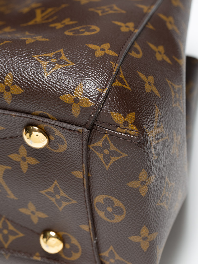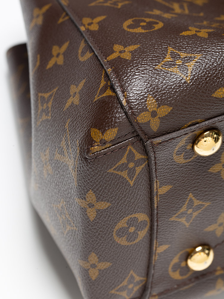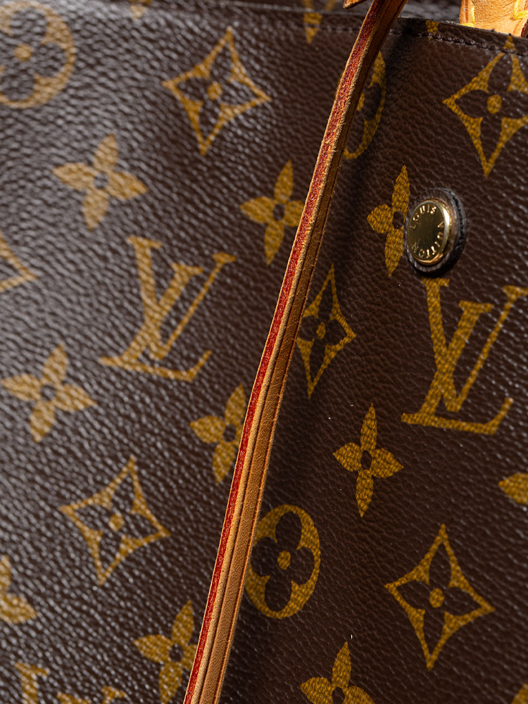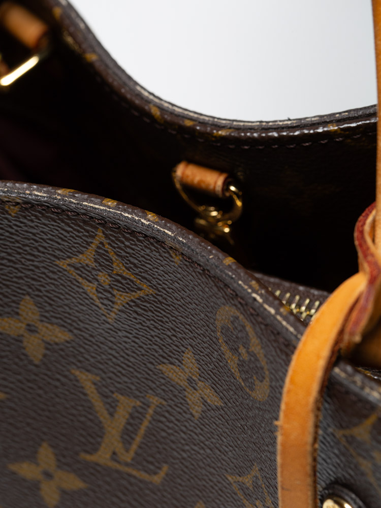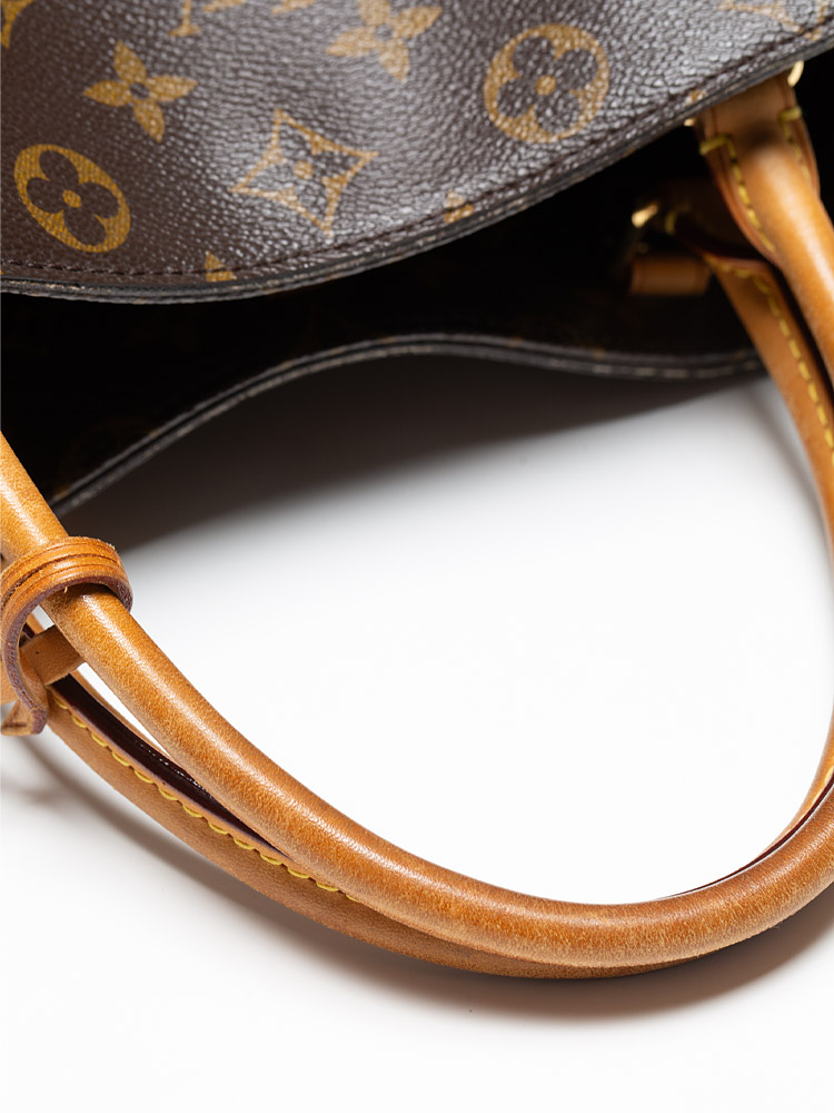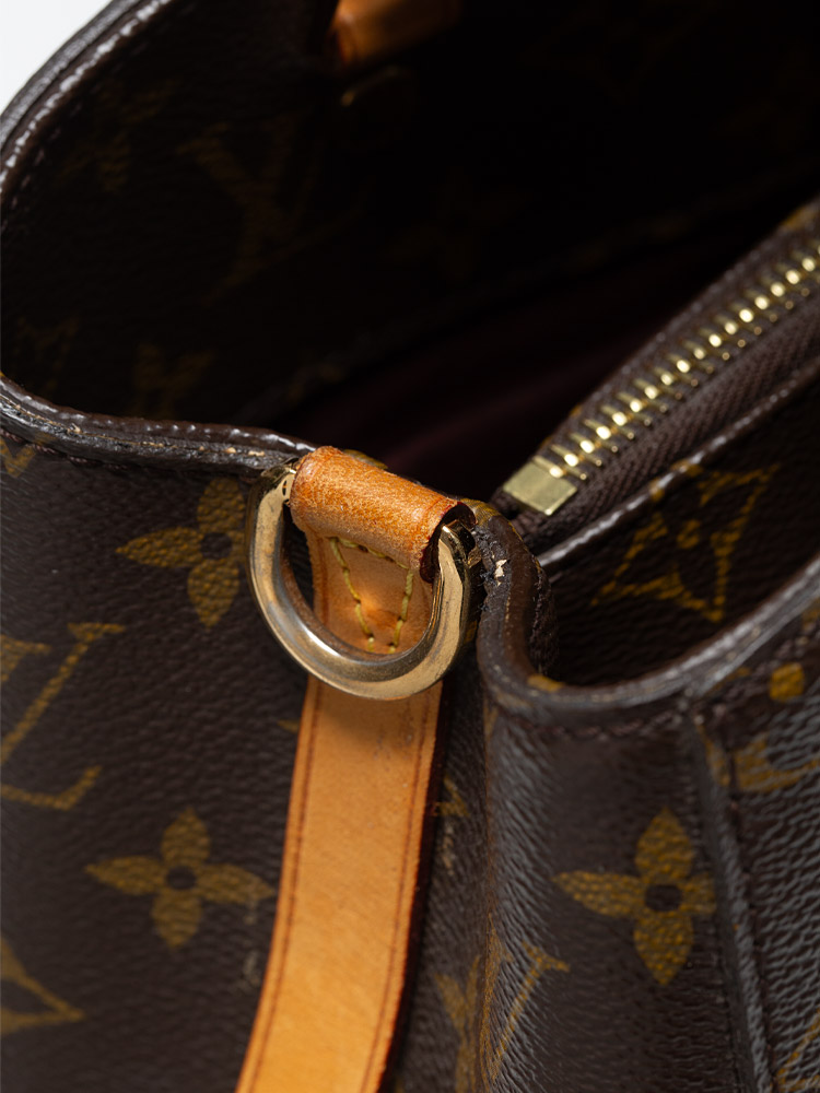 This bag is crafted of Louis Vuitton Monogram coated canvas. It features vachetta trim, double top handles, and an optional shoulder strap. The bag opens to a microfiber lining with slip pockets and centered zipper compartment.