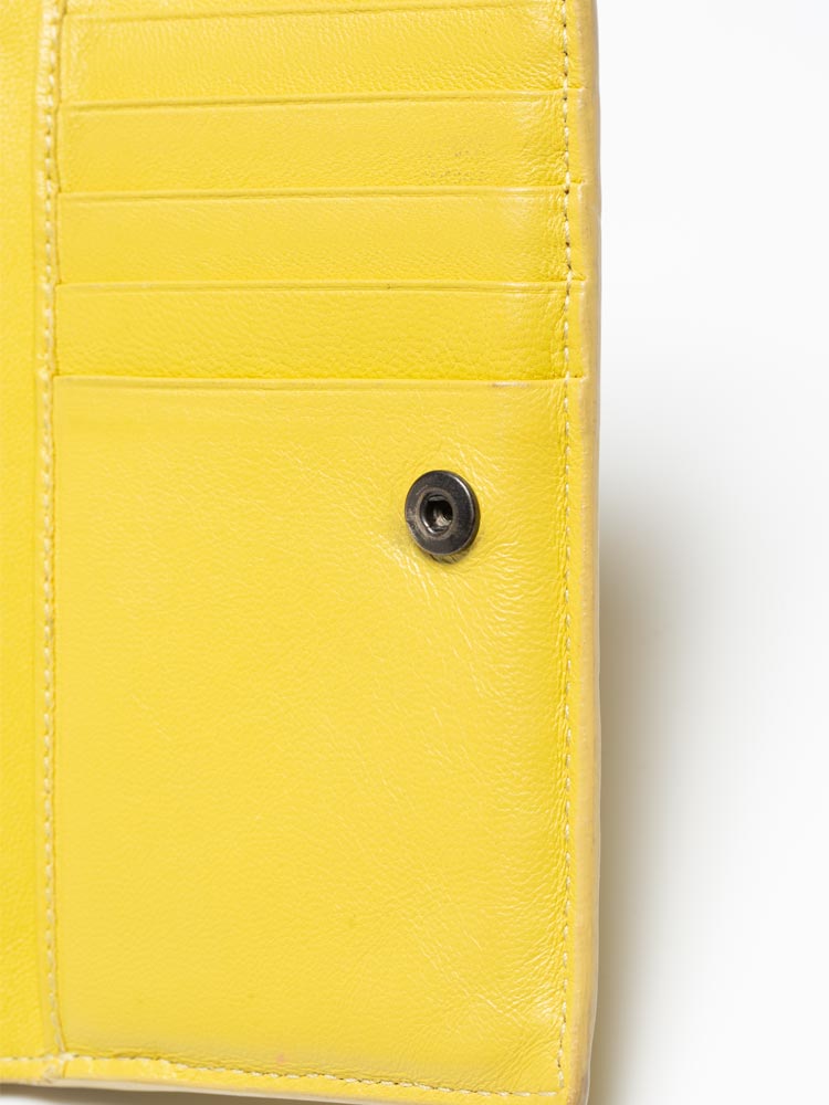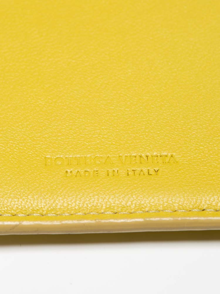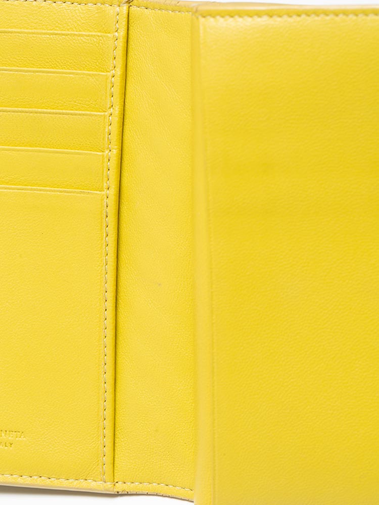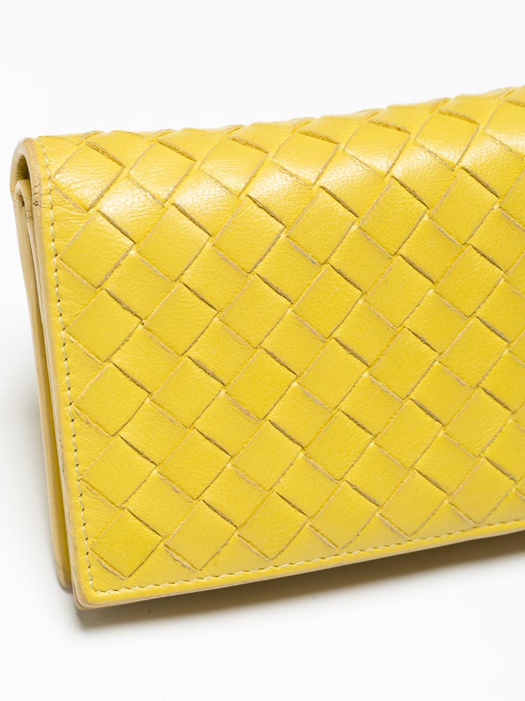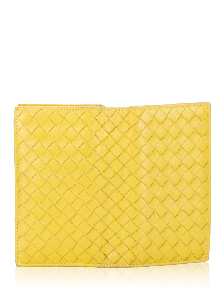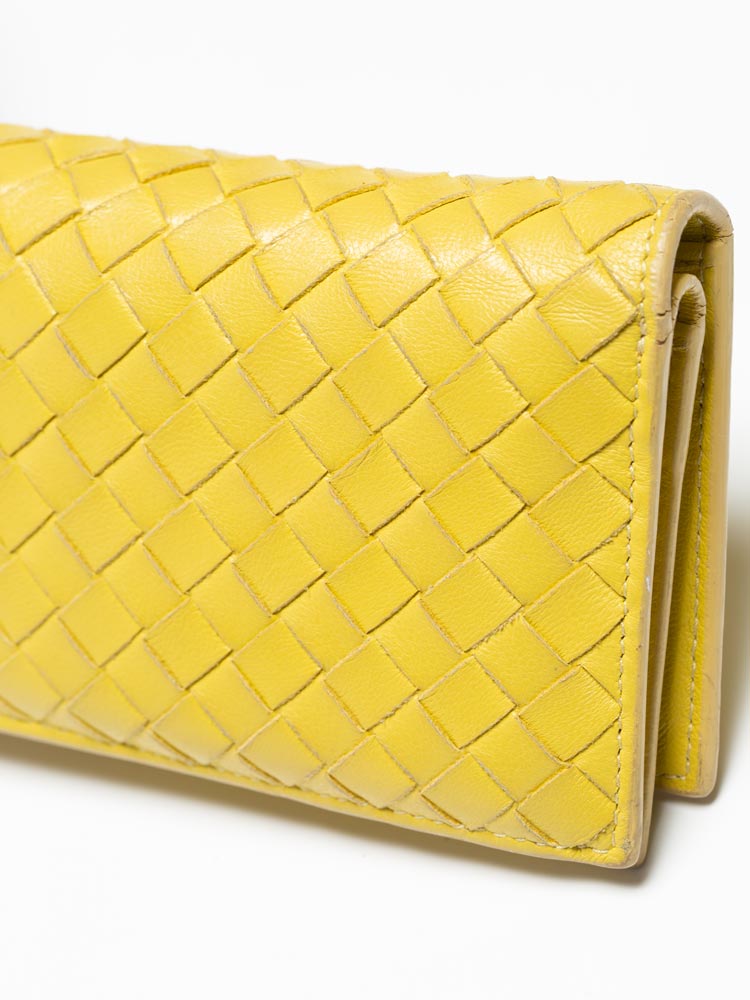 Crafted of intrecciato nappa calfskin leather. The flap opens to a matching leather interior with card slots and patch pockets.