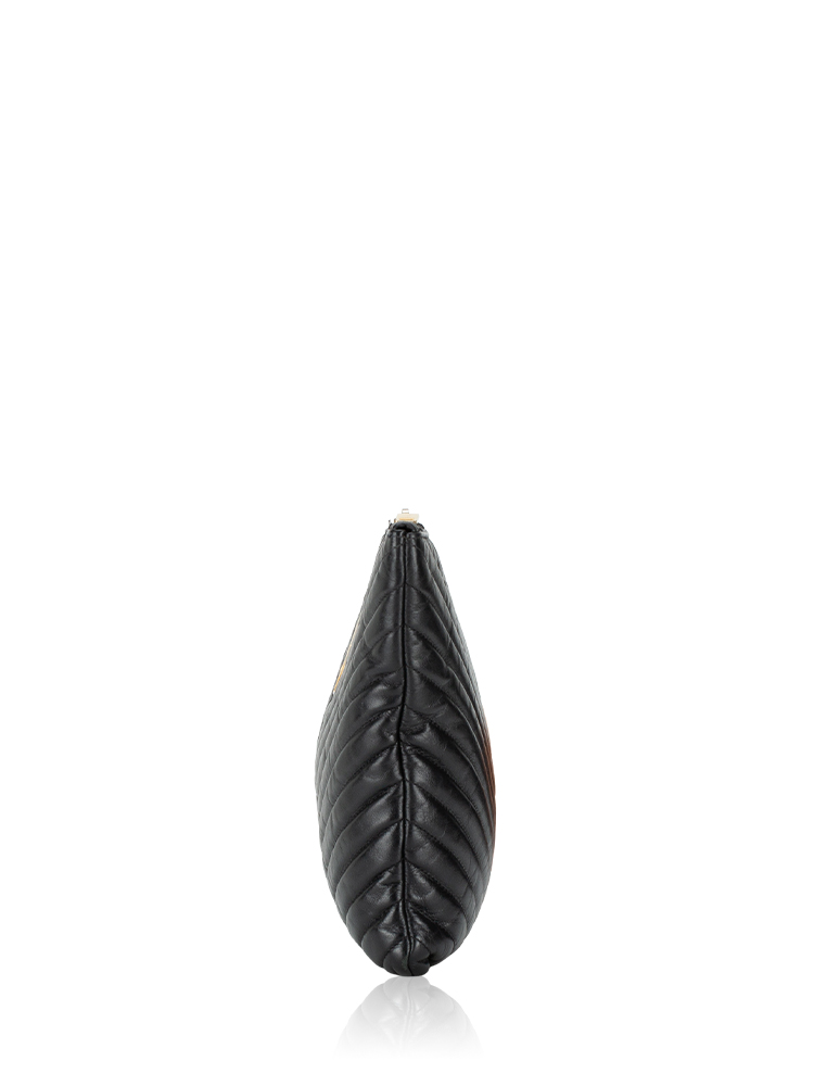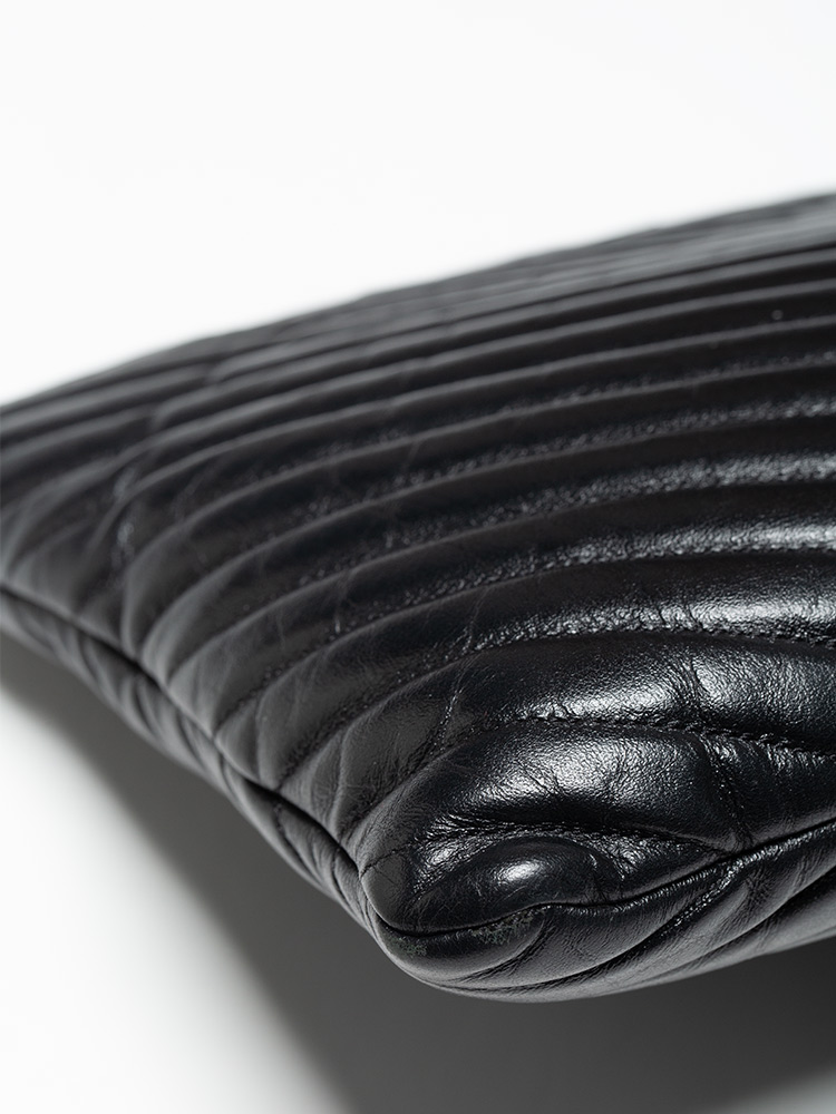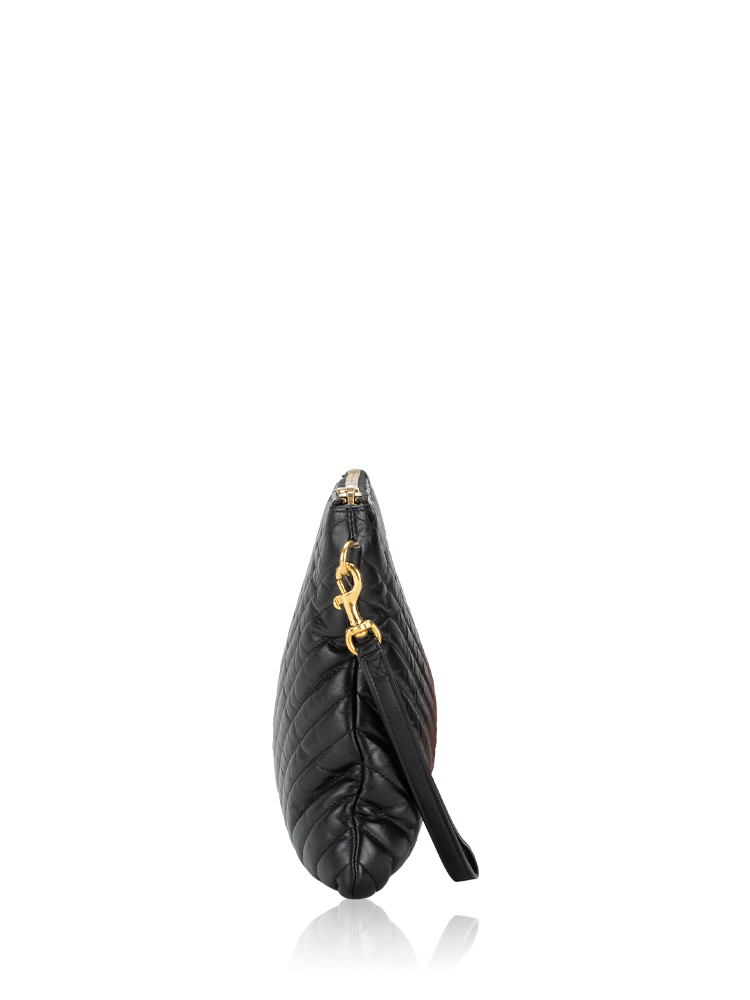 Calfskin Matelasse Monogram Wrist Pouch Black