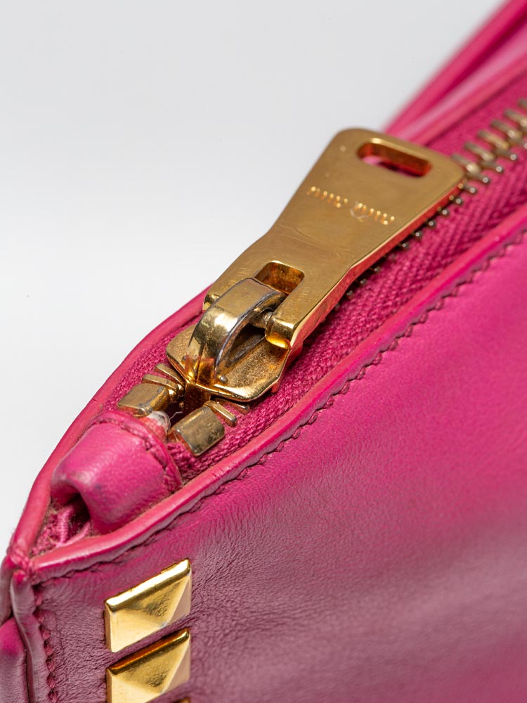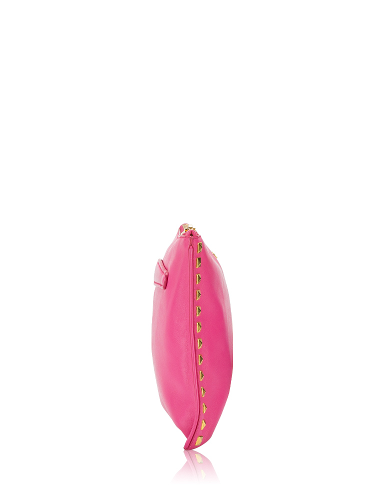 RP0373 Soft Calf Studded Zip Pouch Fuxia