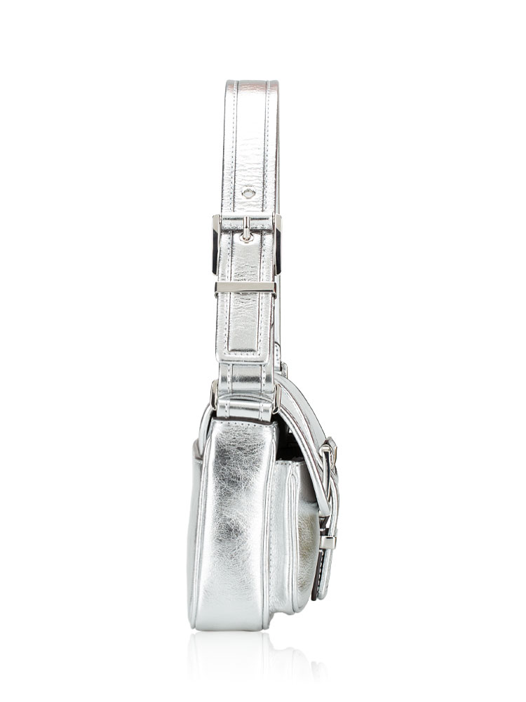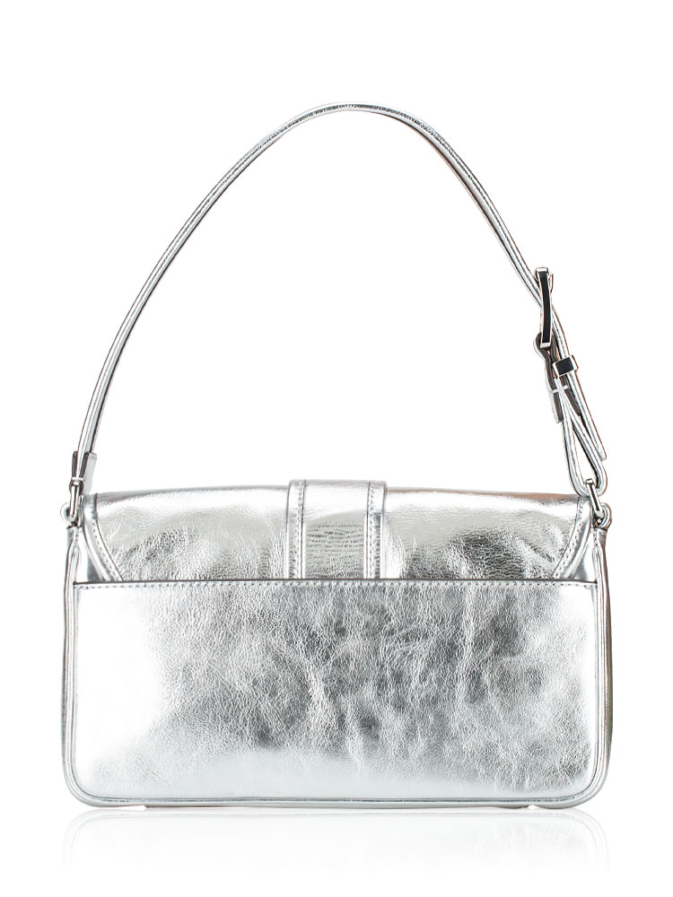 Colby Metallic Leather Medium Shoulder Bag Silver