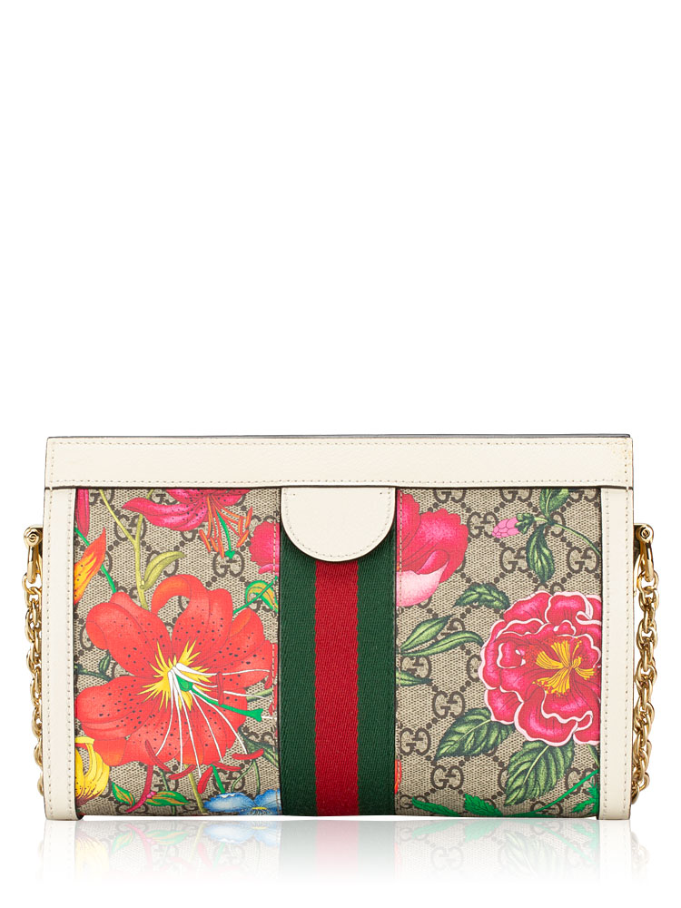 GG Supreme Ophidia Flora Web Small Chain Shoulder Bag White