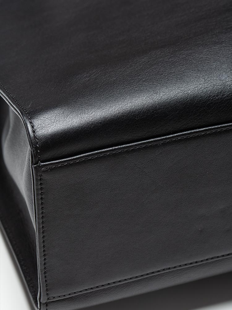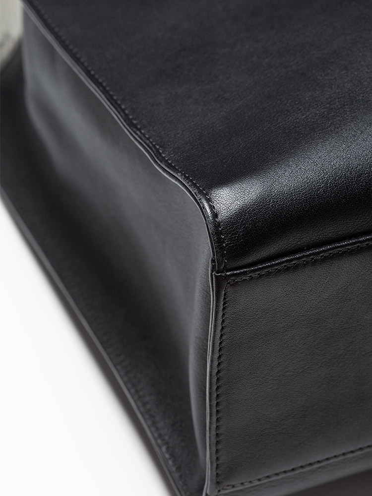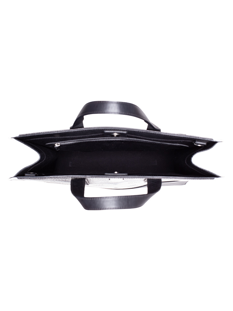 Calfskin Visetos Chevron Colorblock Tote Black White
