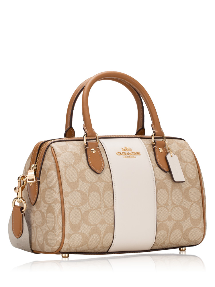CR122 Signature Stripe Rowan Satchel Light Khaki Chalk Light Saddle
