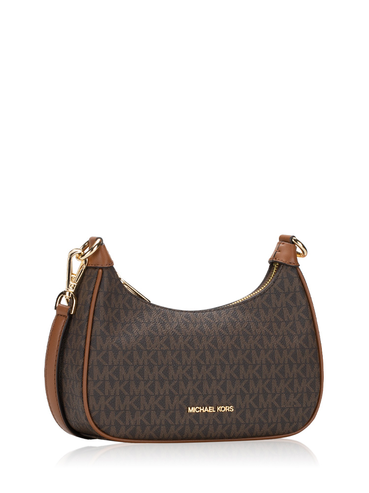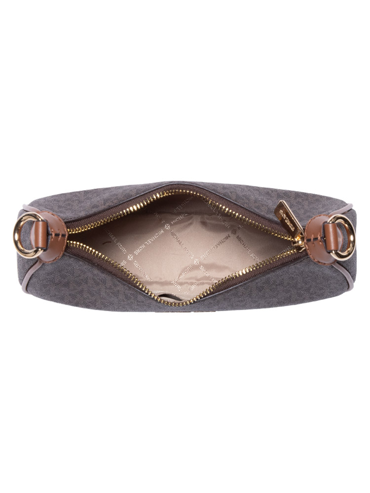 Signature Cora Medium Zip Pouchette Bag Brown Gold