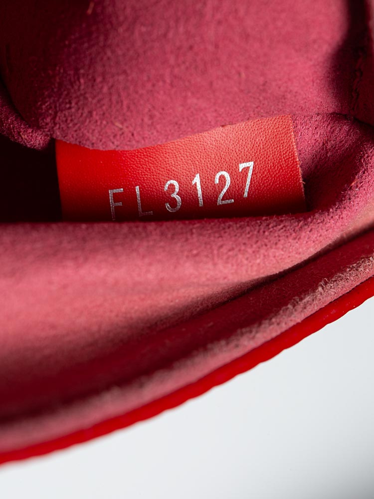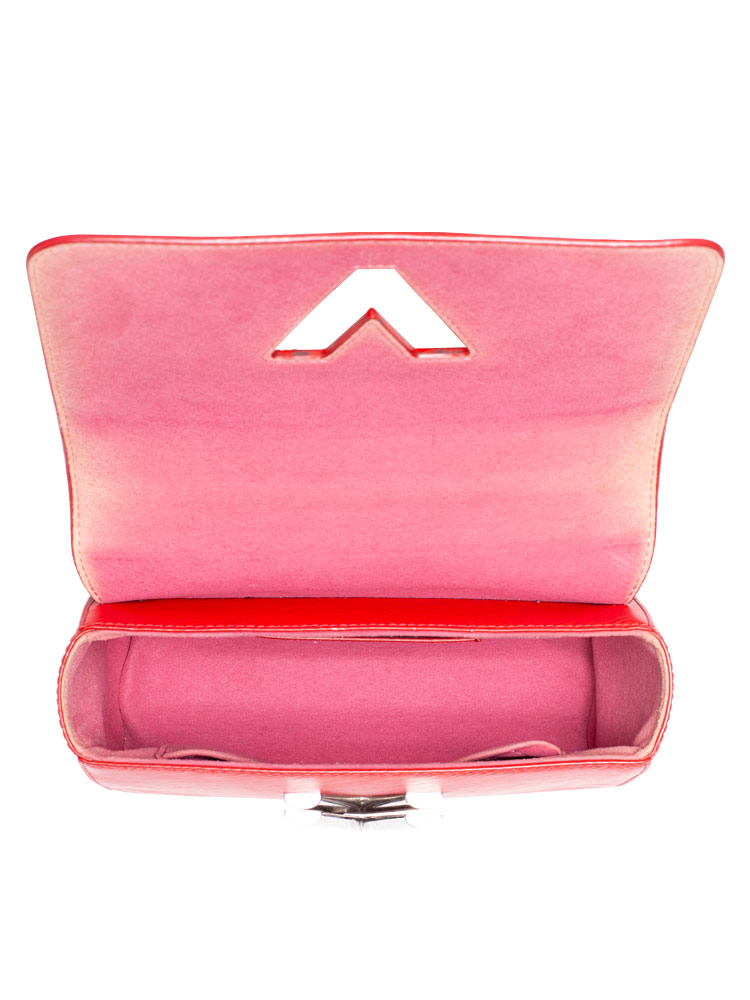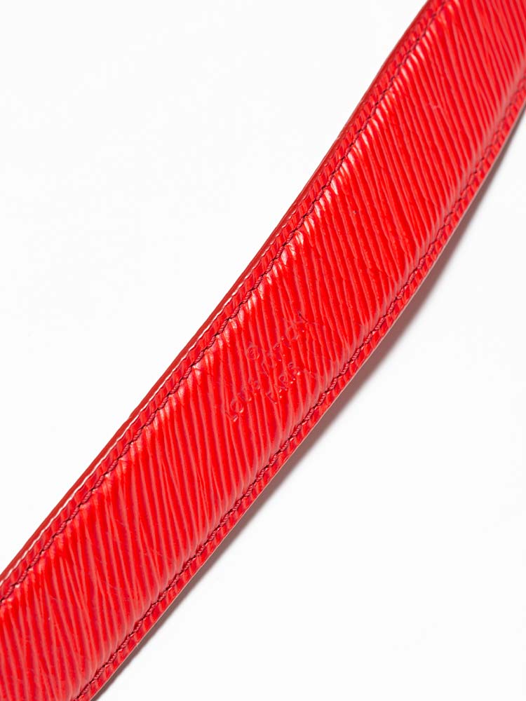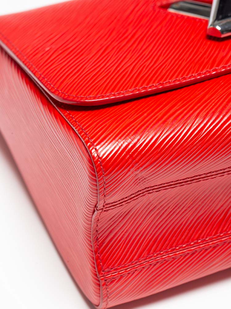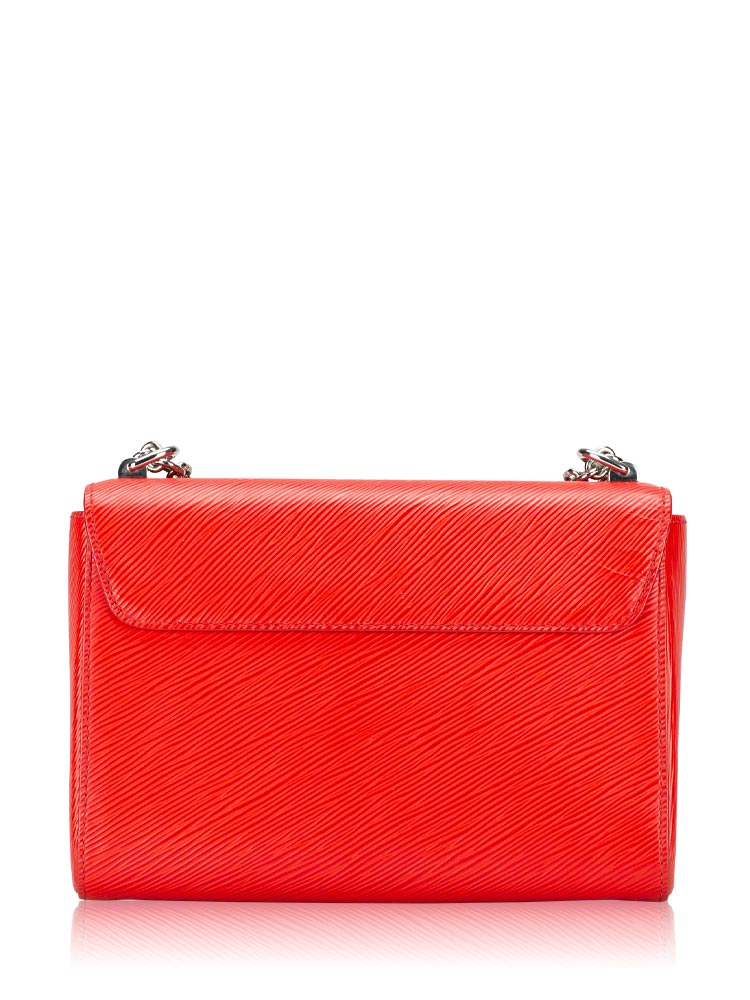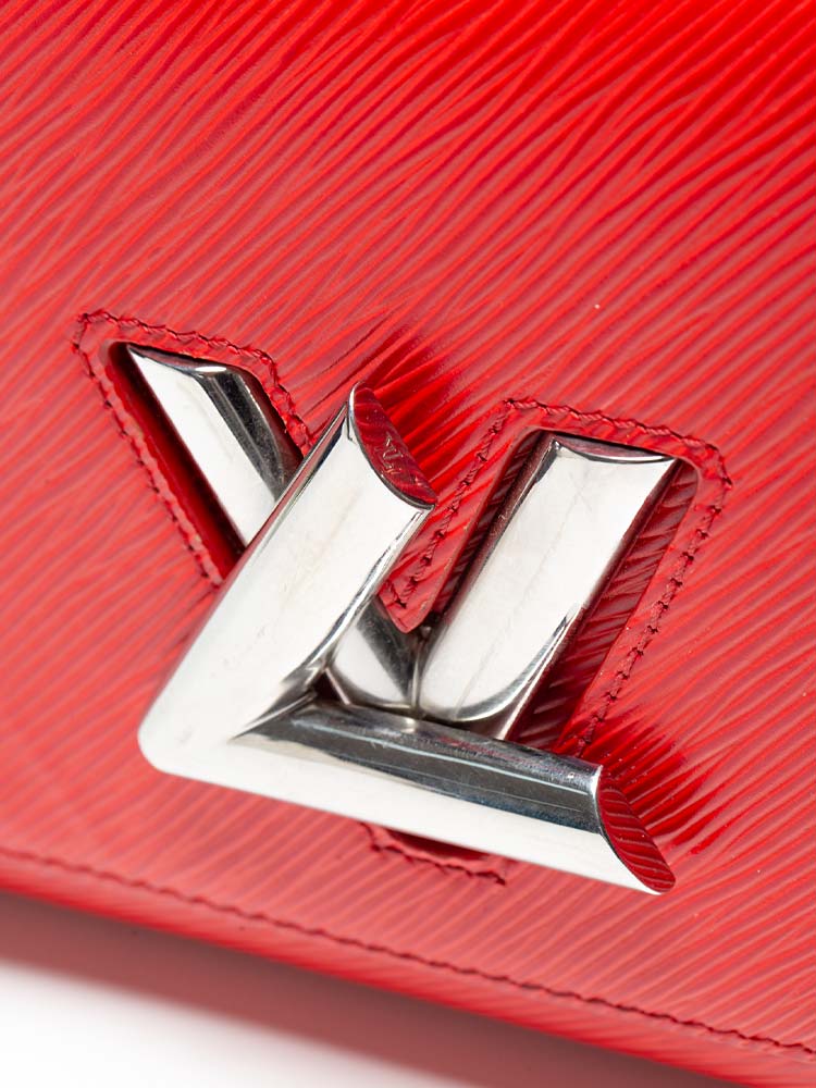 Crafted of textured epi leather. Features a silver chain shoulder strap with a leather shoulder pad linked to the top of the bag and a silver LV twist lock on the facing flap. This opens to a microfiber interior with a small patch pocket.