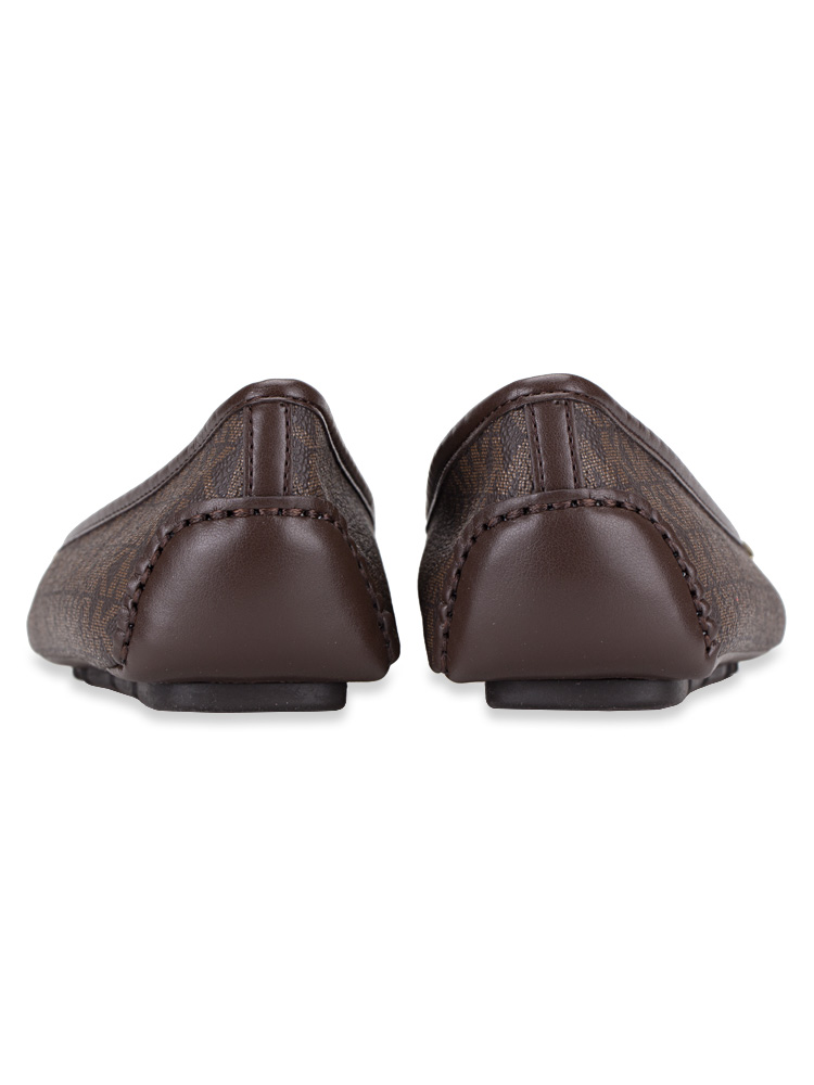 Crafted of signature coated canvas with leather trim. The shoe features closed round toe and MK metal logo medallion with studs on.