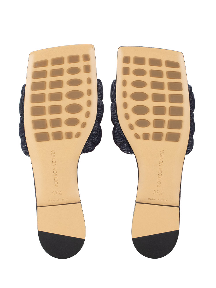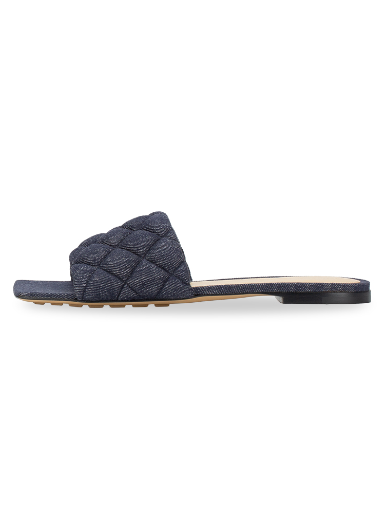 Denim Matelasse Padded Flat Sandals Indigo Sz 37.5