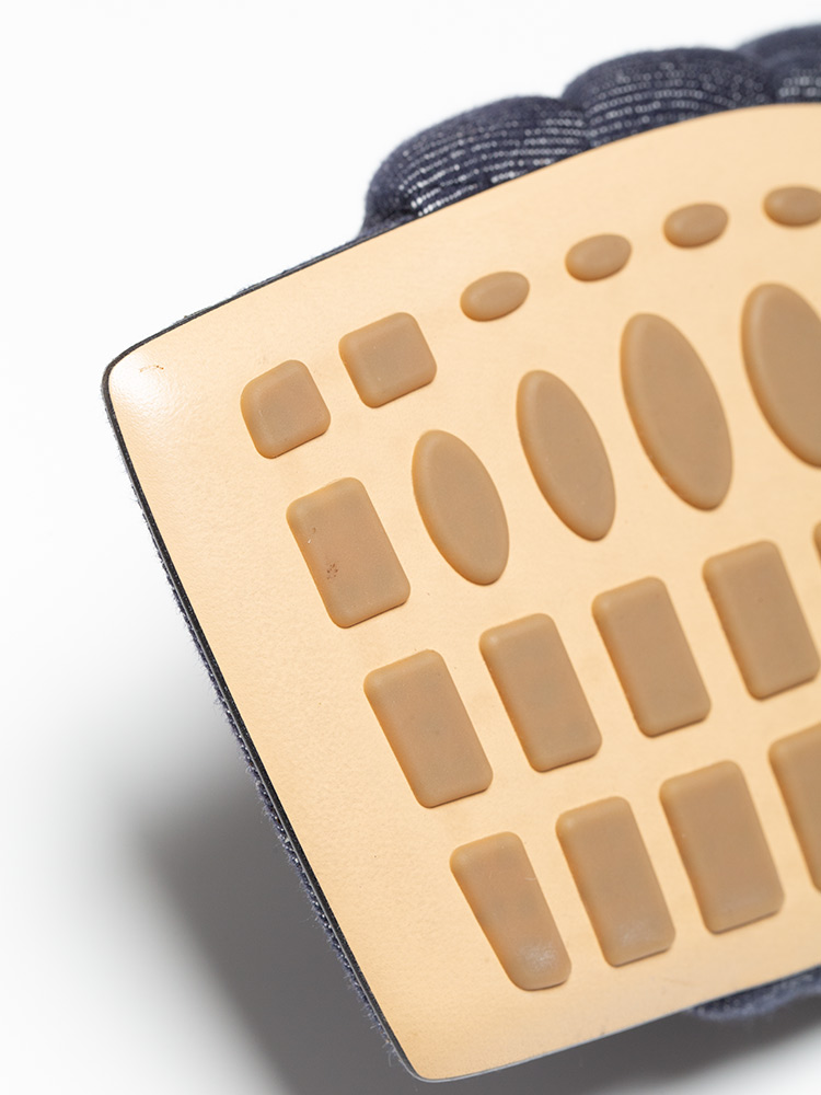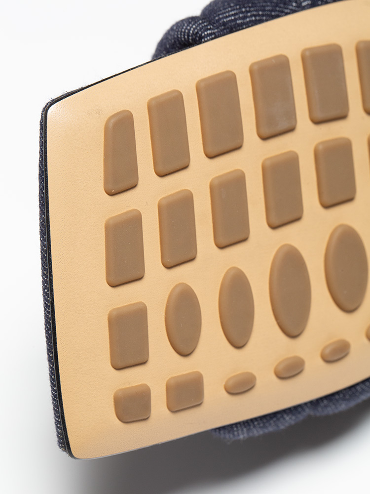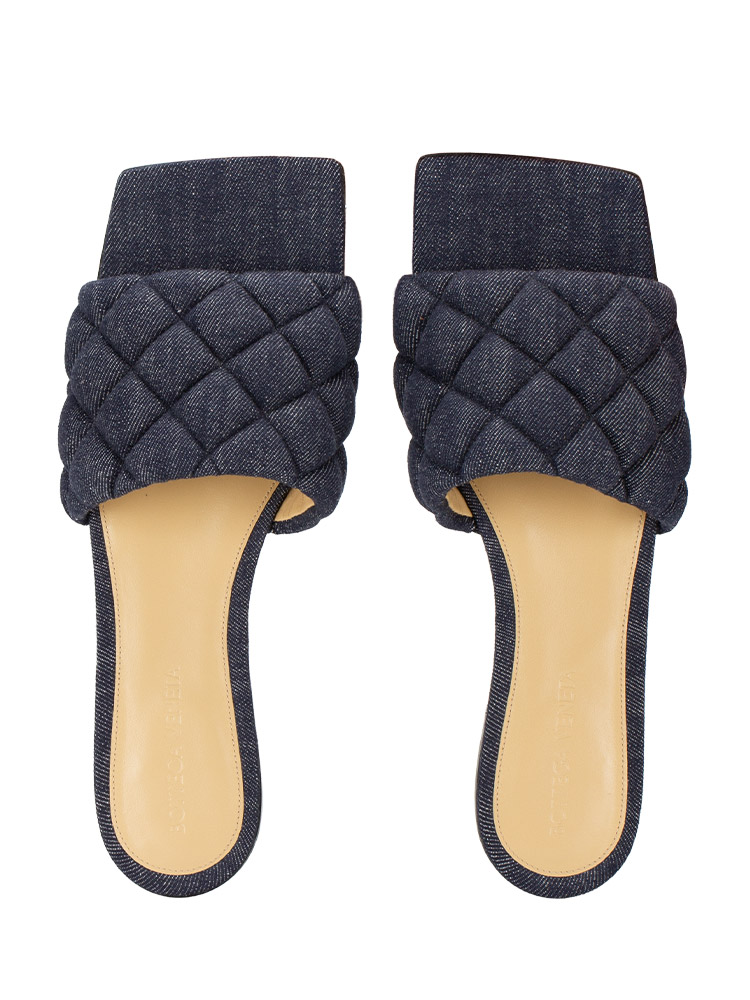 These stunning sandals are crafted of quilted denim and feature an elongated square open toe.