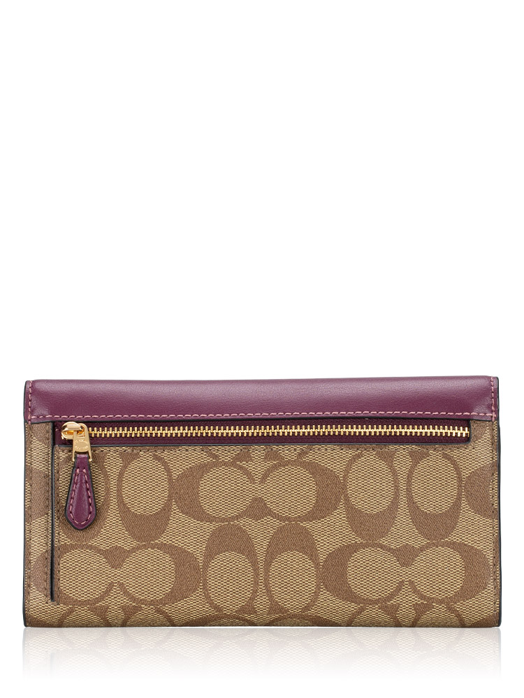 C5966 Signature Slim Trifold Wallet Khaki Deep Berry