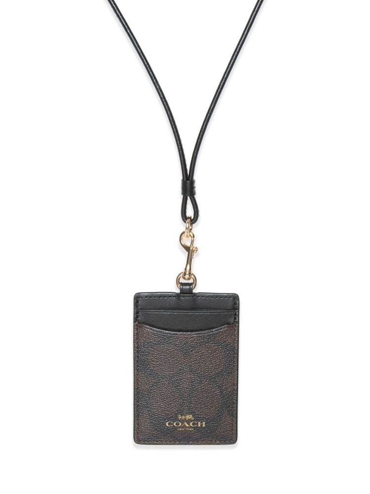Made of signature coated canvas with leather trim. It equipped with 2 card slots and an ID window with Coach embossed logo lettering.