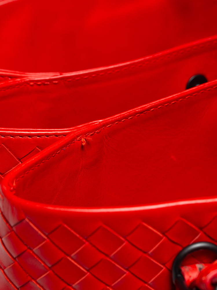Nappa Intrecciato Roma Small Shoulder Bag Red