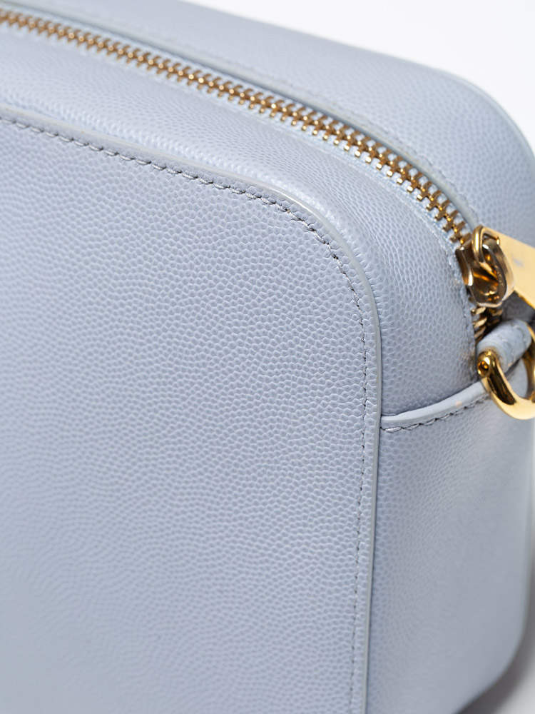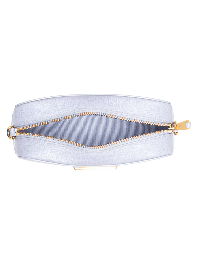 Made of cowhide leather. The bag features a zip closure that opens to fabric lining with interior one zip pocket, two slip pockets, adjustable and removable long strap.