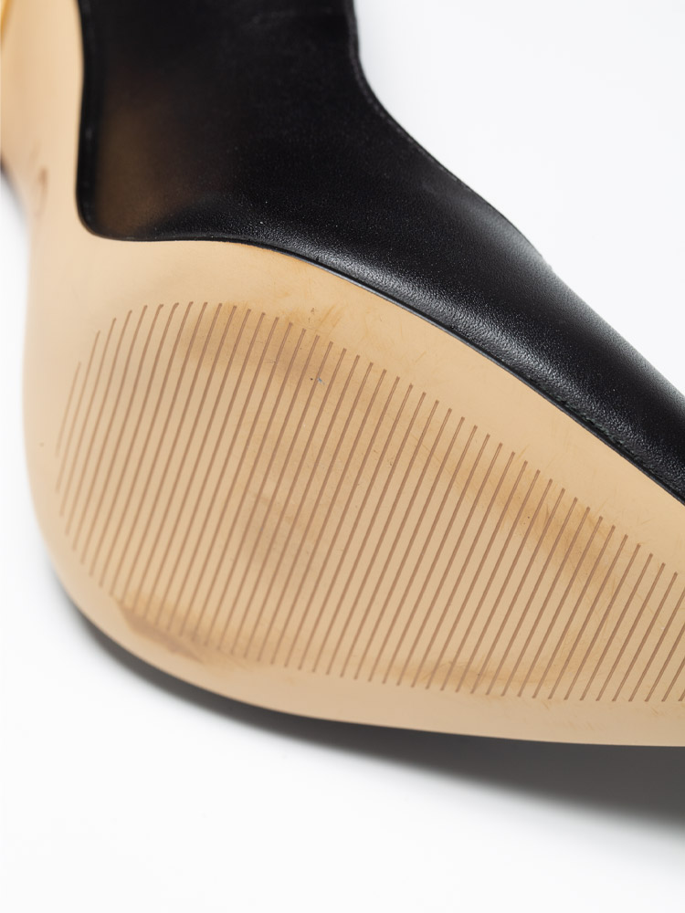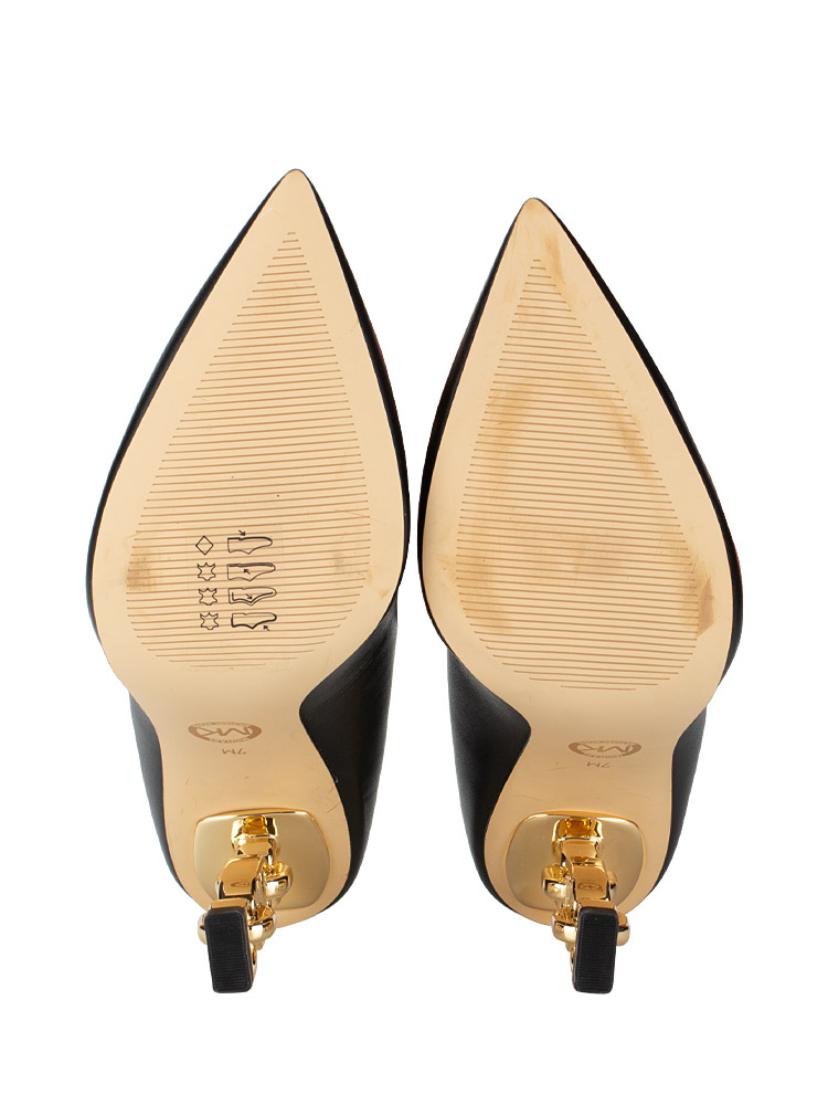 Tenley Empire Logo Embellished Leather Pump Black Sz 7