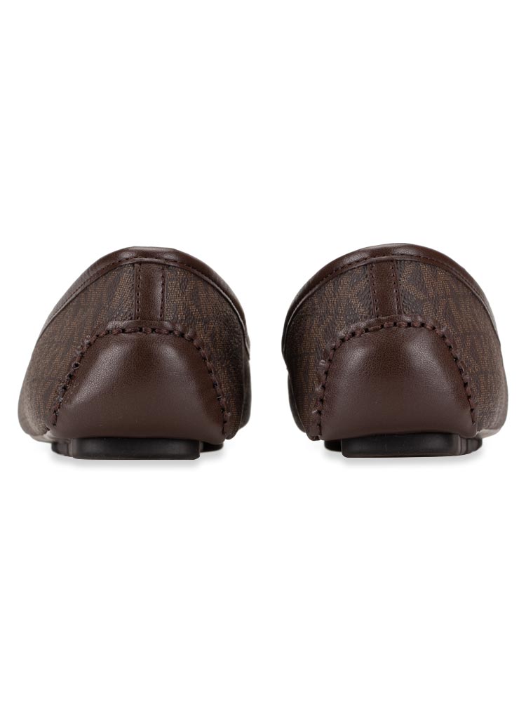 Crafted of signature coated canvas with leather trim. The shoe features a closed round toe and MK metal logo medallion with pyramid studs on.