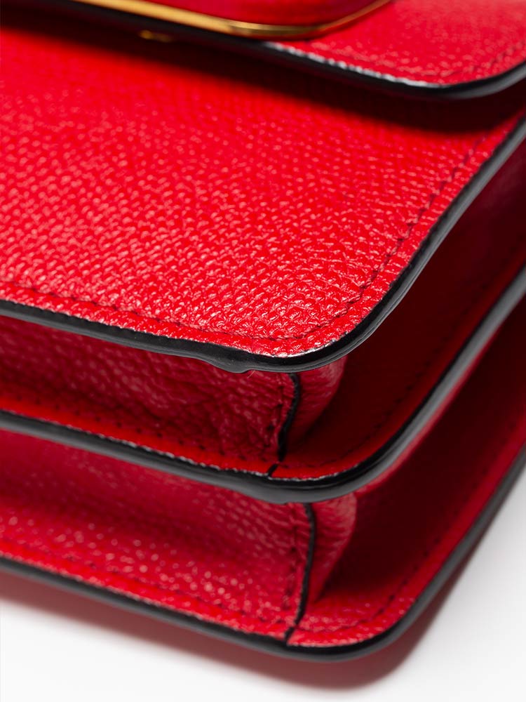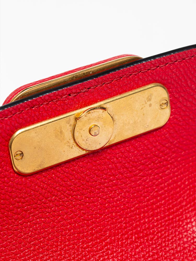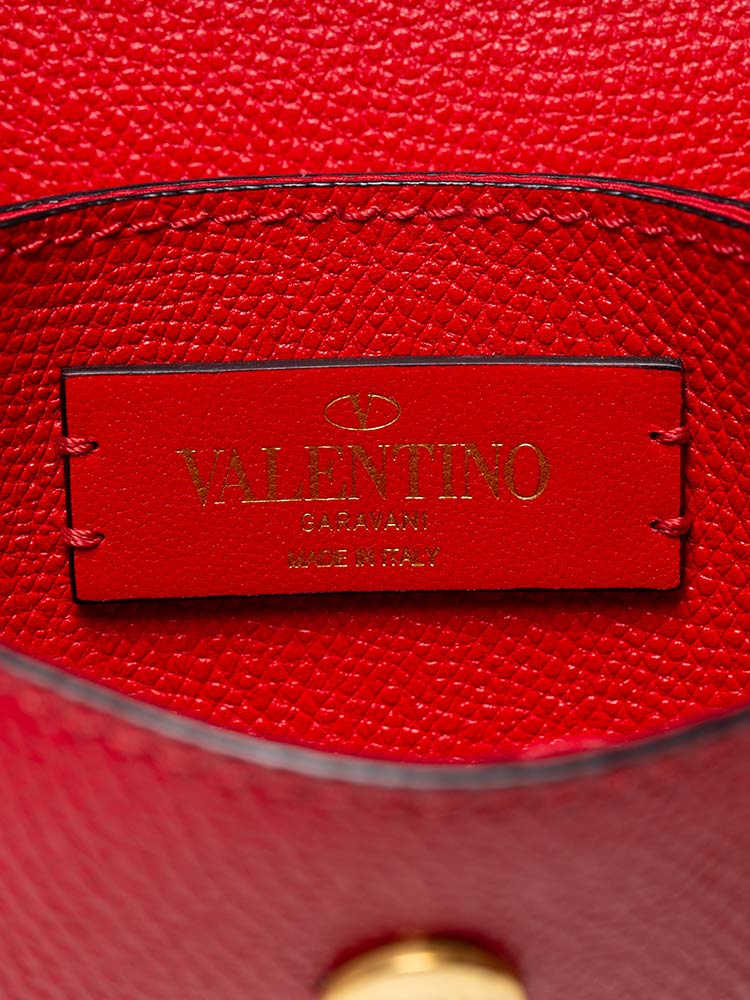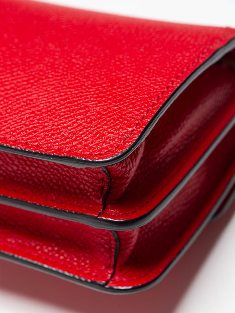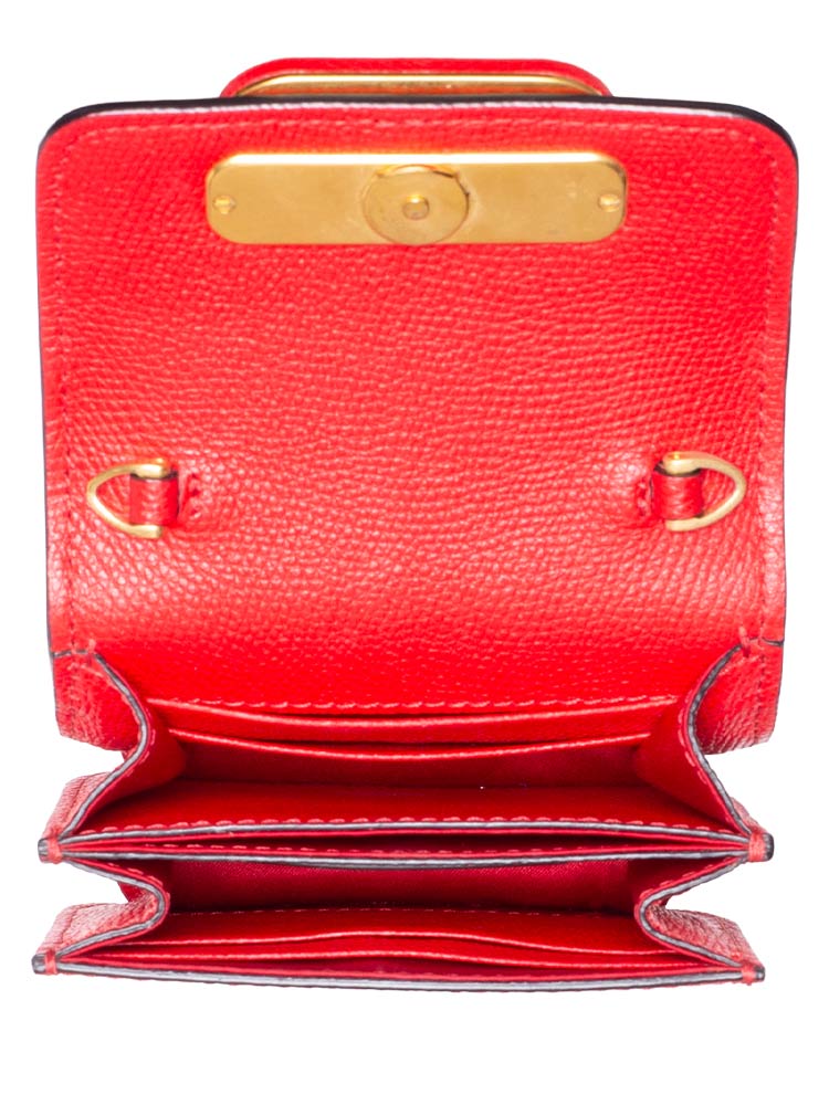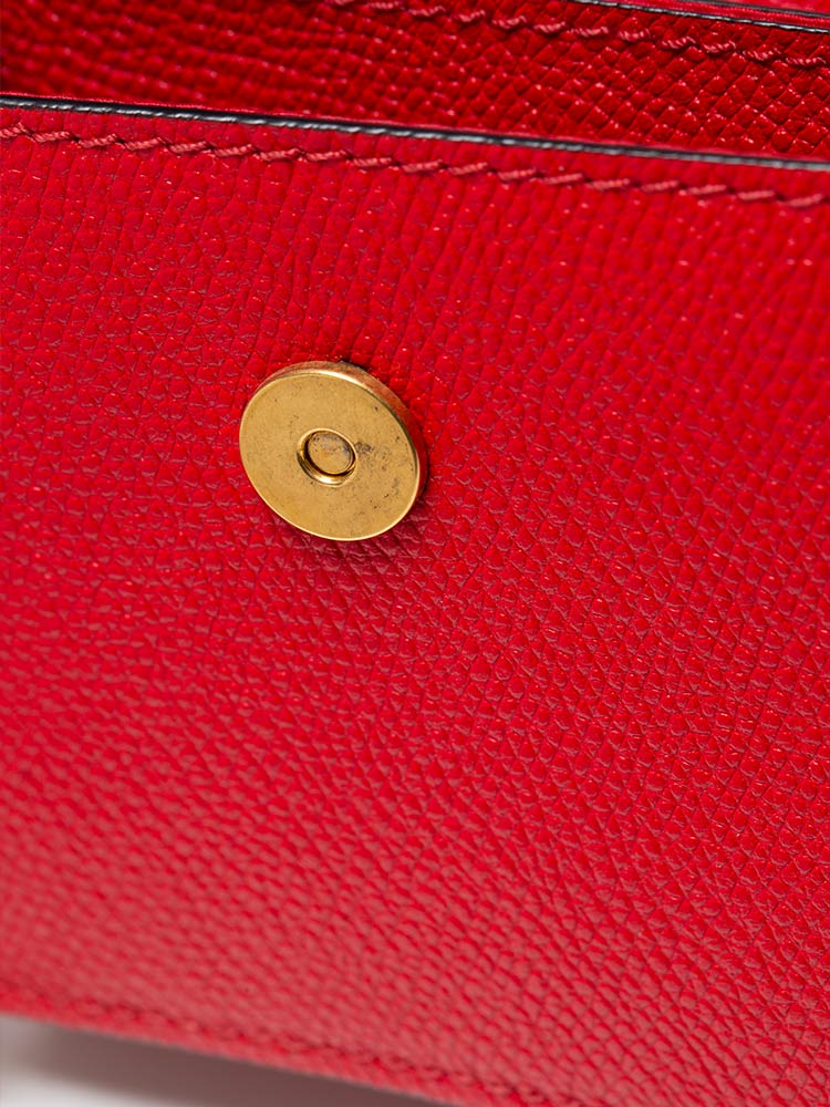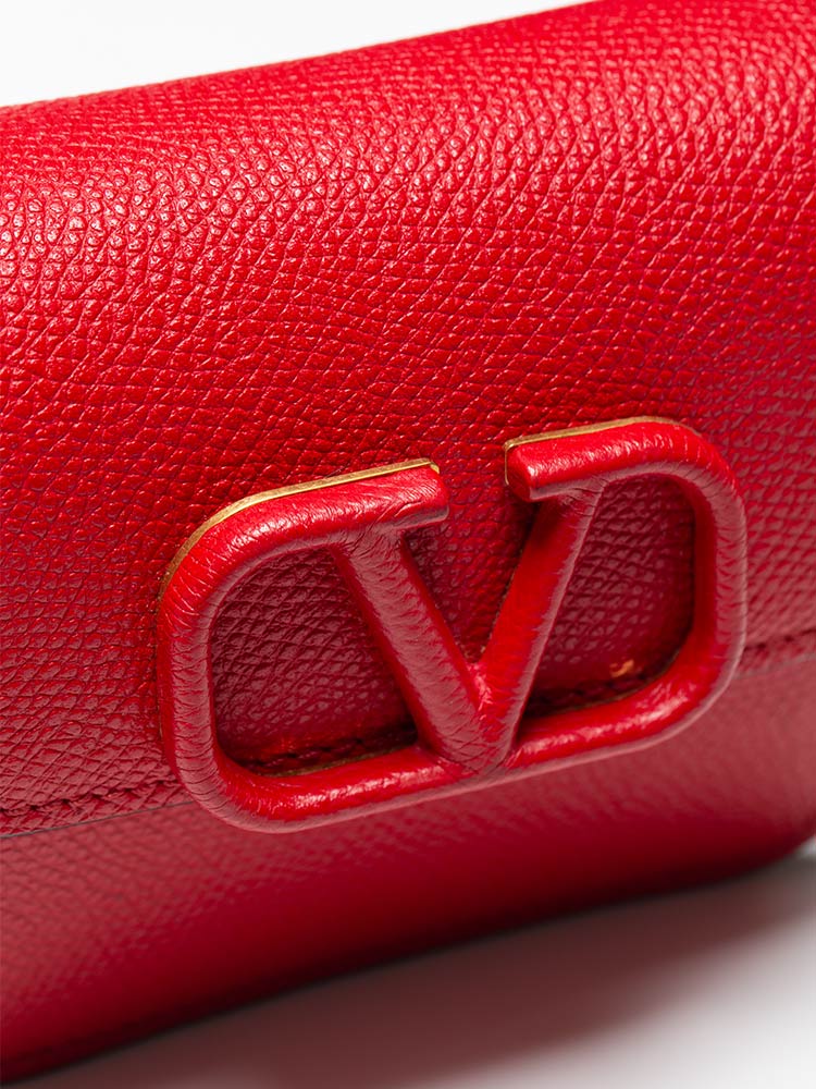Grainy Calfskin VLogo Compact Chain Wallet Rouge