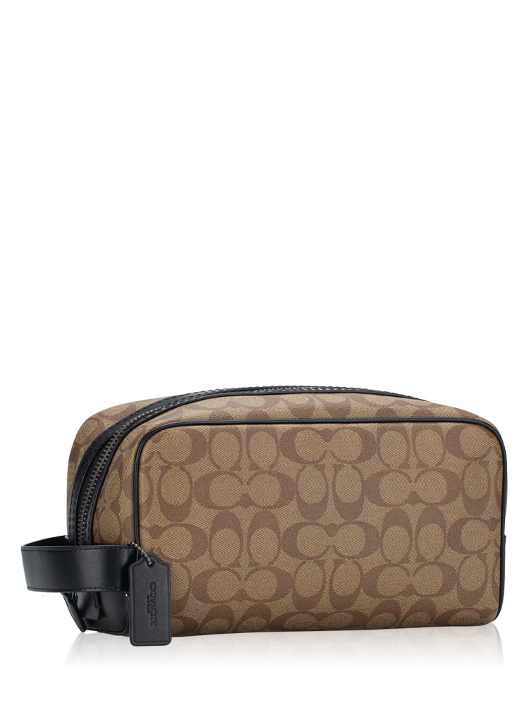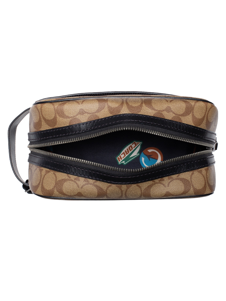 Made of signature coated canvas and smooth leather. The bag features a zip closure that opens to fabric lining with interior one slip pocket.