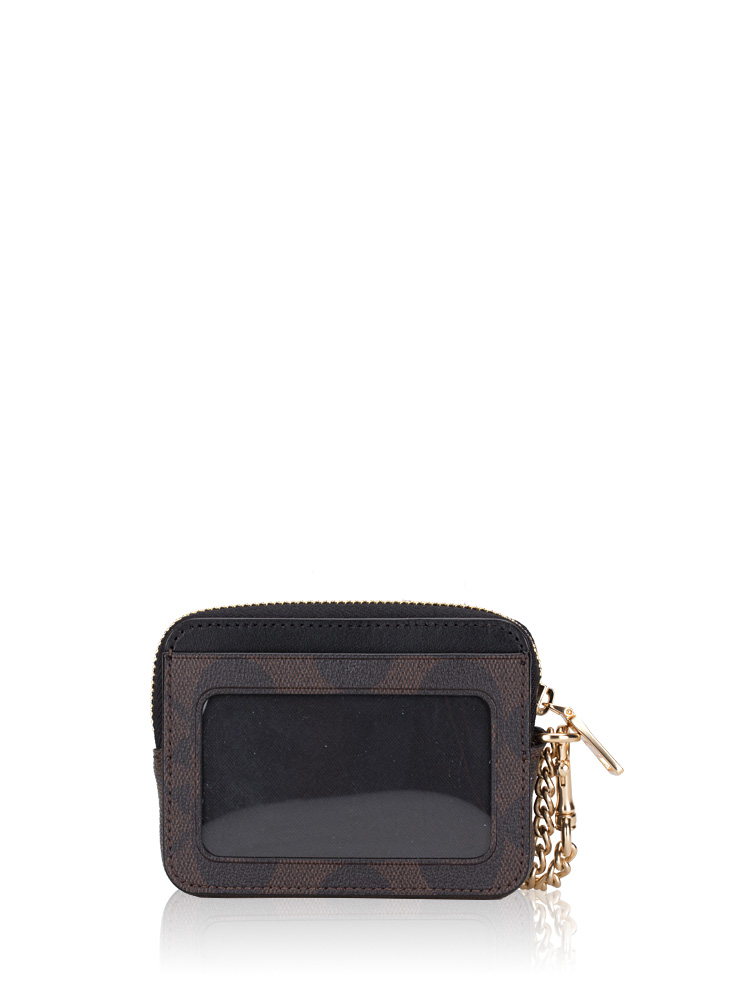 Made of signature coated canvas and smooth leather, this card case pairs perfectly with your smaller bags, and the chain strap allows you to use it as wristlet.
