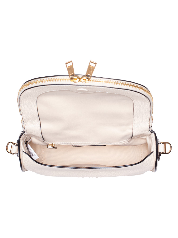 The perfect-sized miniature crossbody bag, crafted in supple leather with signature logo. A flap with hidden magnetic closure opens to an ample compartment with matching fabric lining and plenty of pockets.