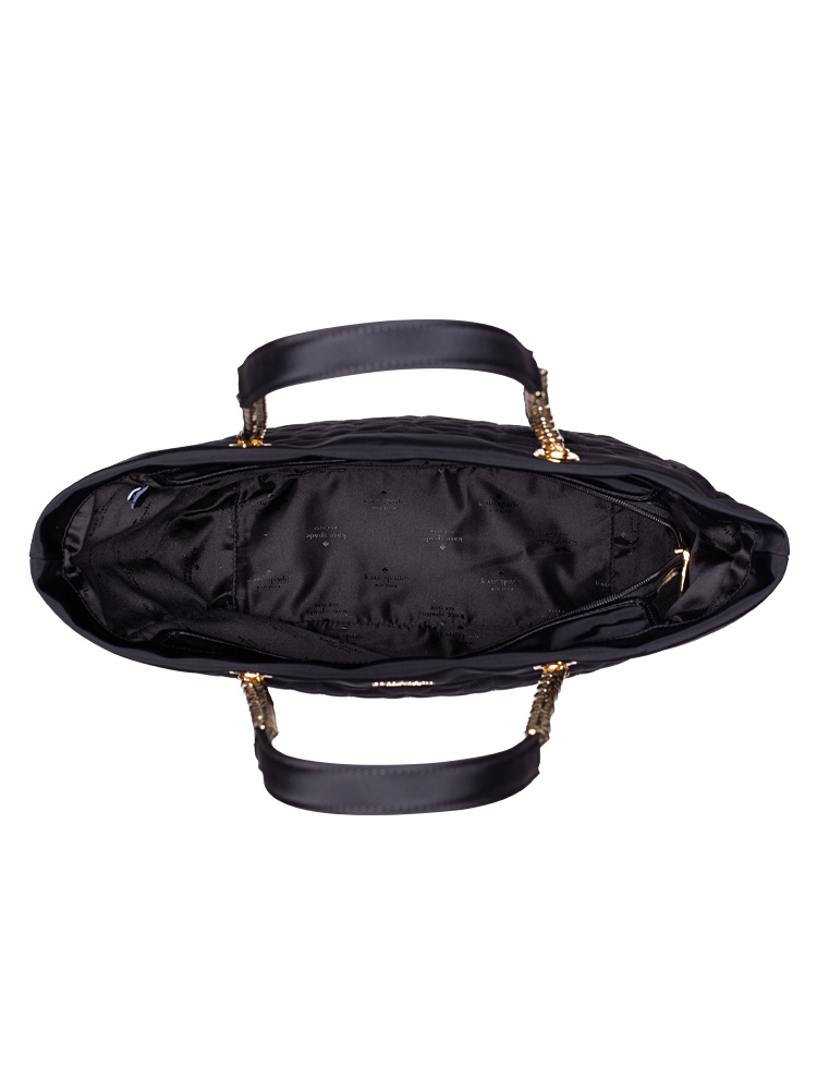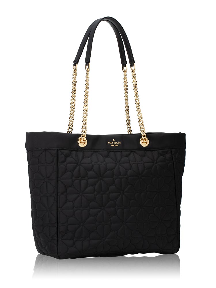 Spade Flower Quilted Nylon Large Chain Tote Black
