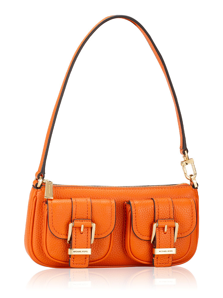 Zoe Small Pebbled Leather Pochette Orange Punch
