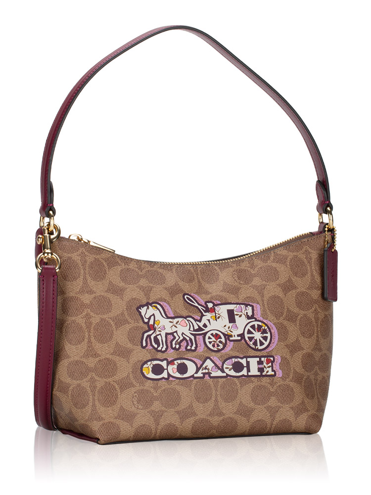 CX588 Signature Horse And Carriage Print Shoulder Bag Tan Black Cherry