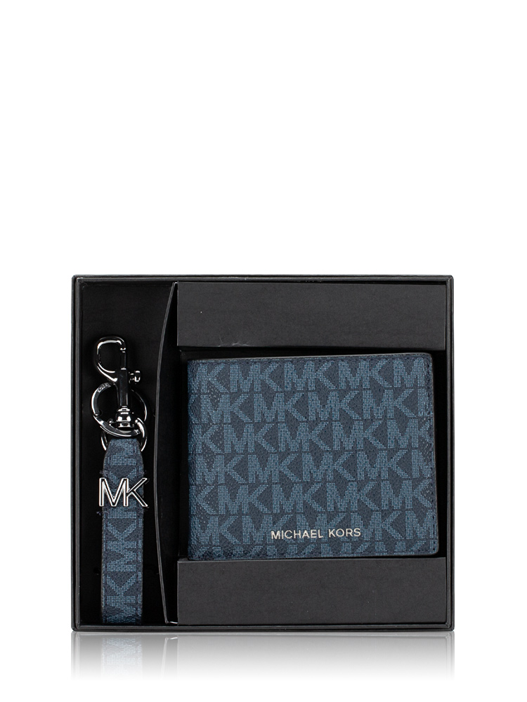 Men Signature Bifold Wallet and Key Chain Gift Set Admiral Pale Blue