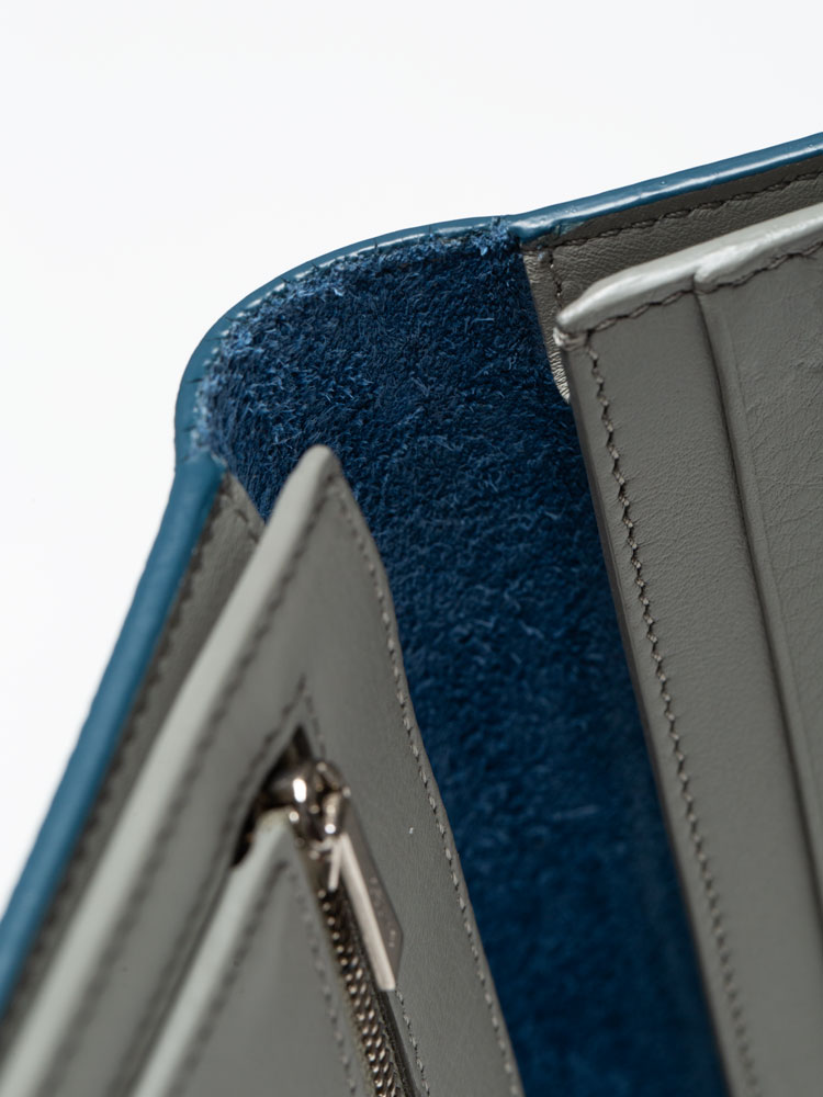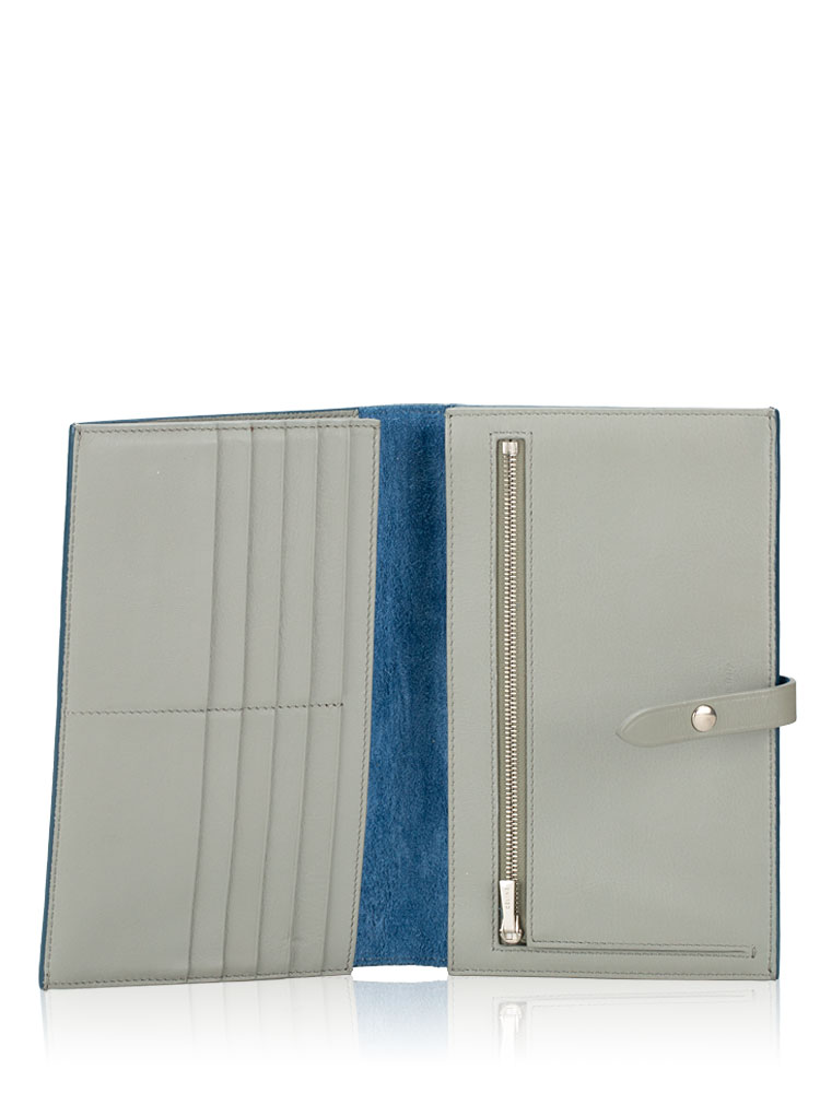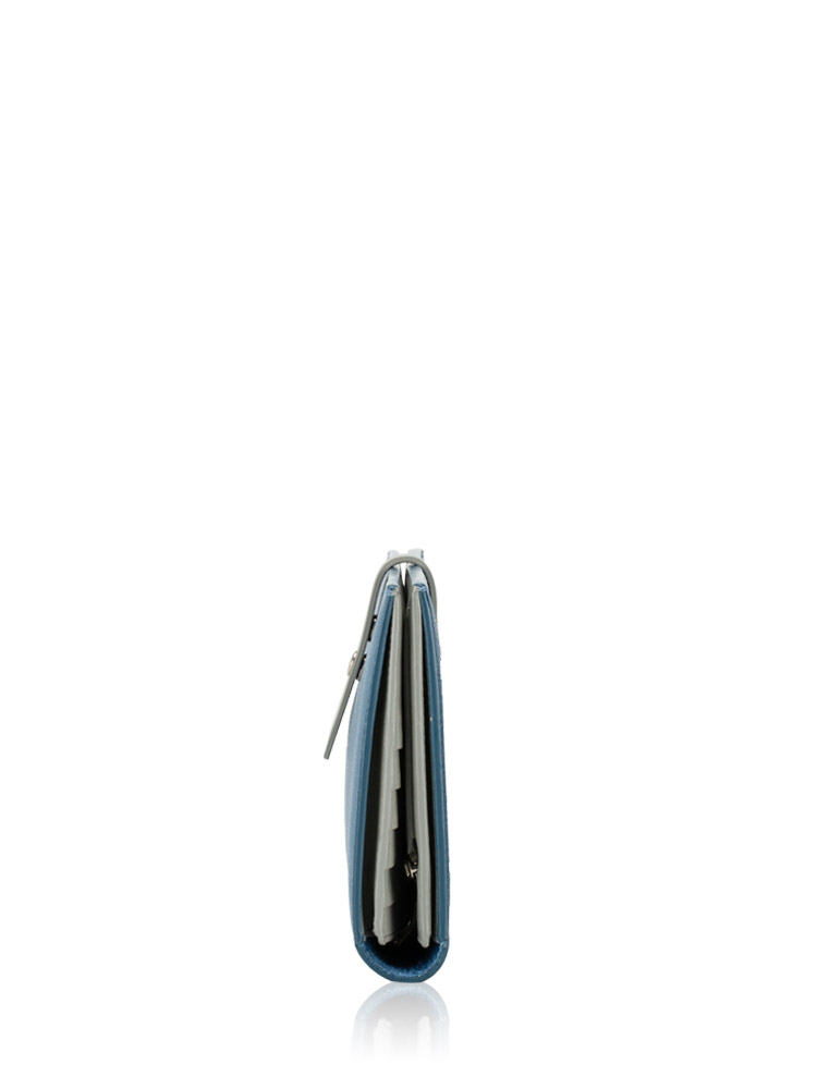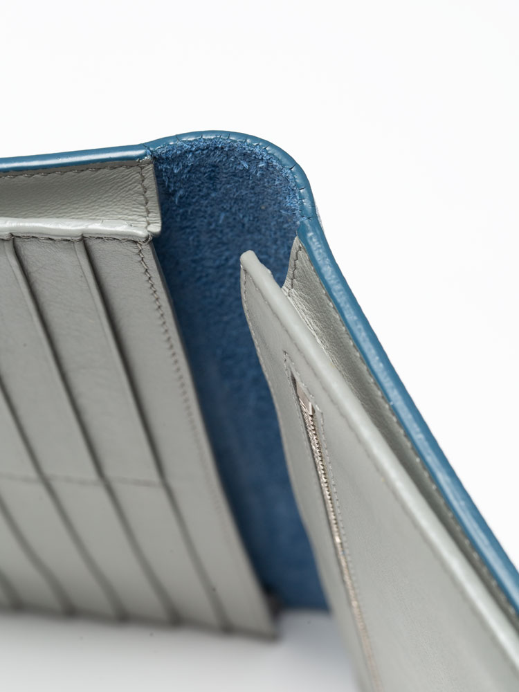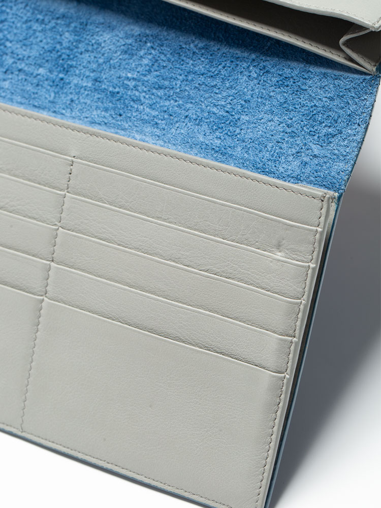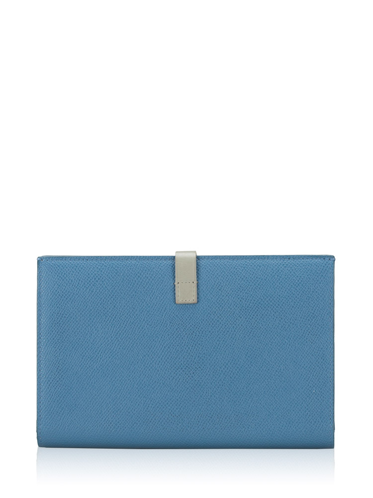 Grained Calfskin Large Multifunction Strap Wallet Washed Blue