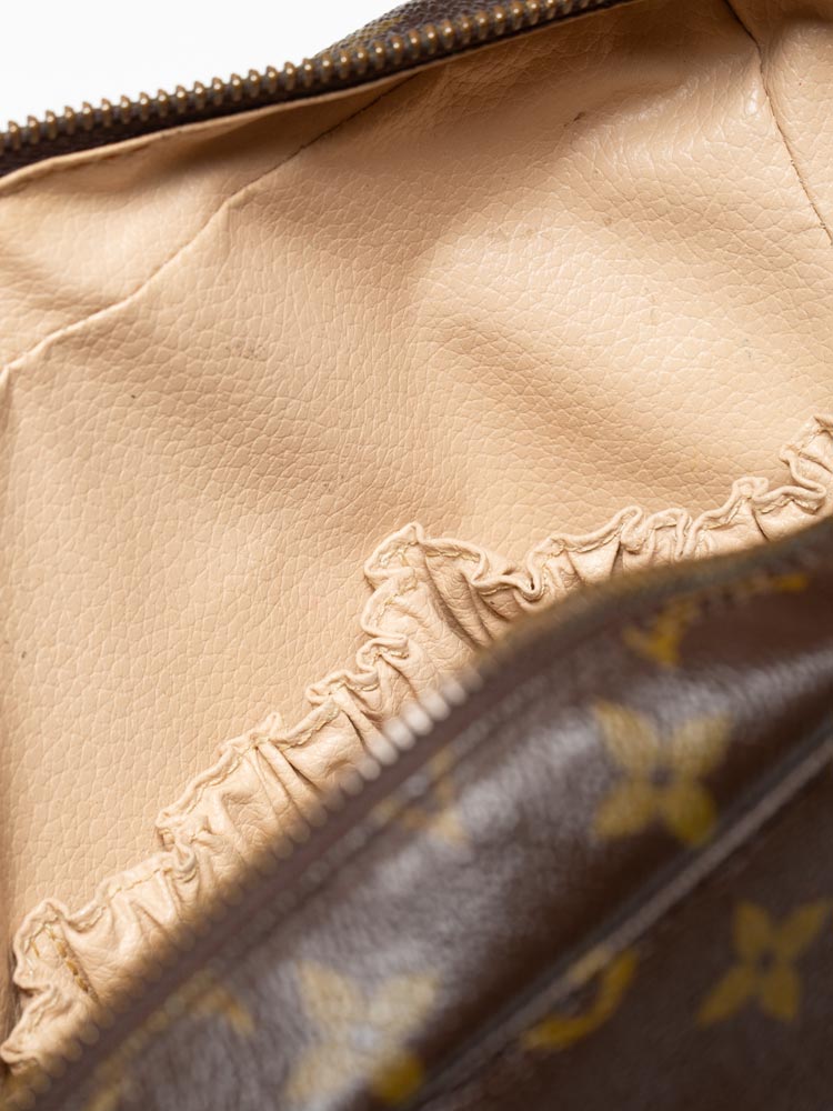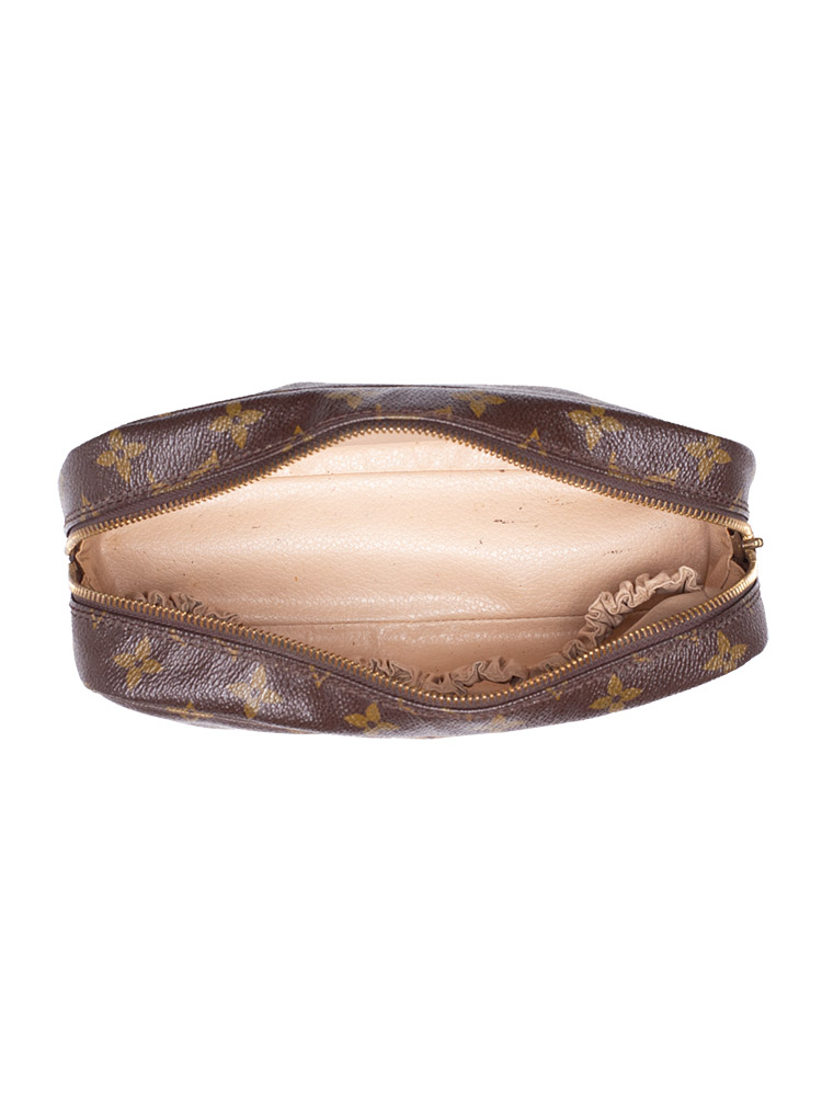 Crafted of signature Louis Vuitton monogram on the toile canvas. The interior lined with leather and features a patch pocket and elastic holders.