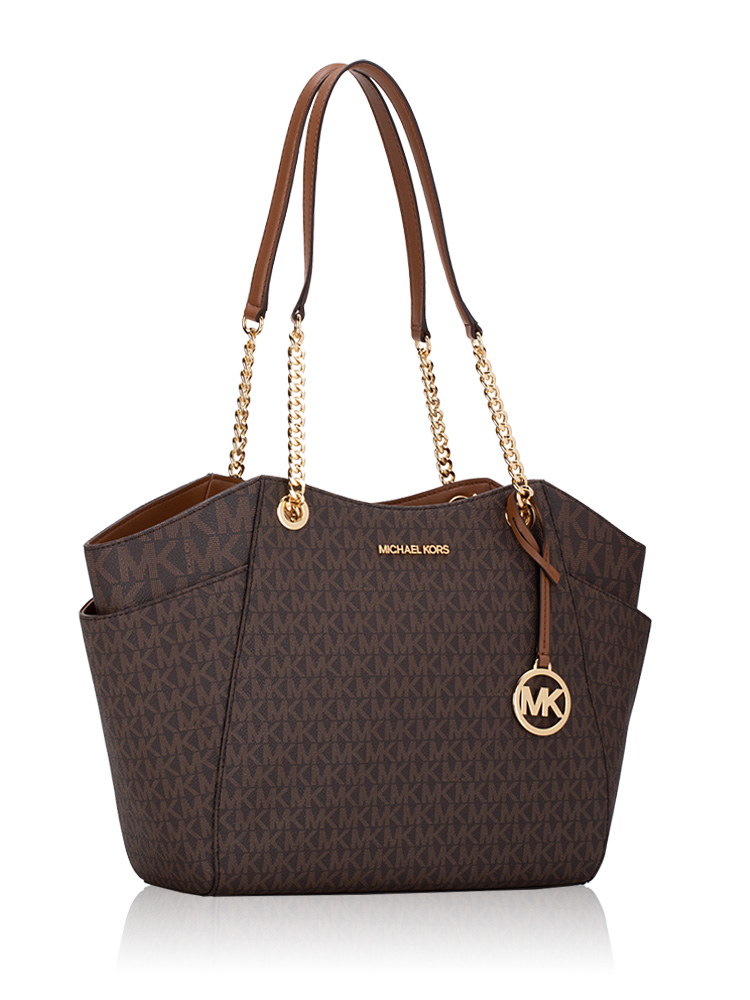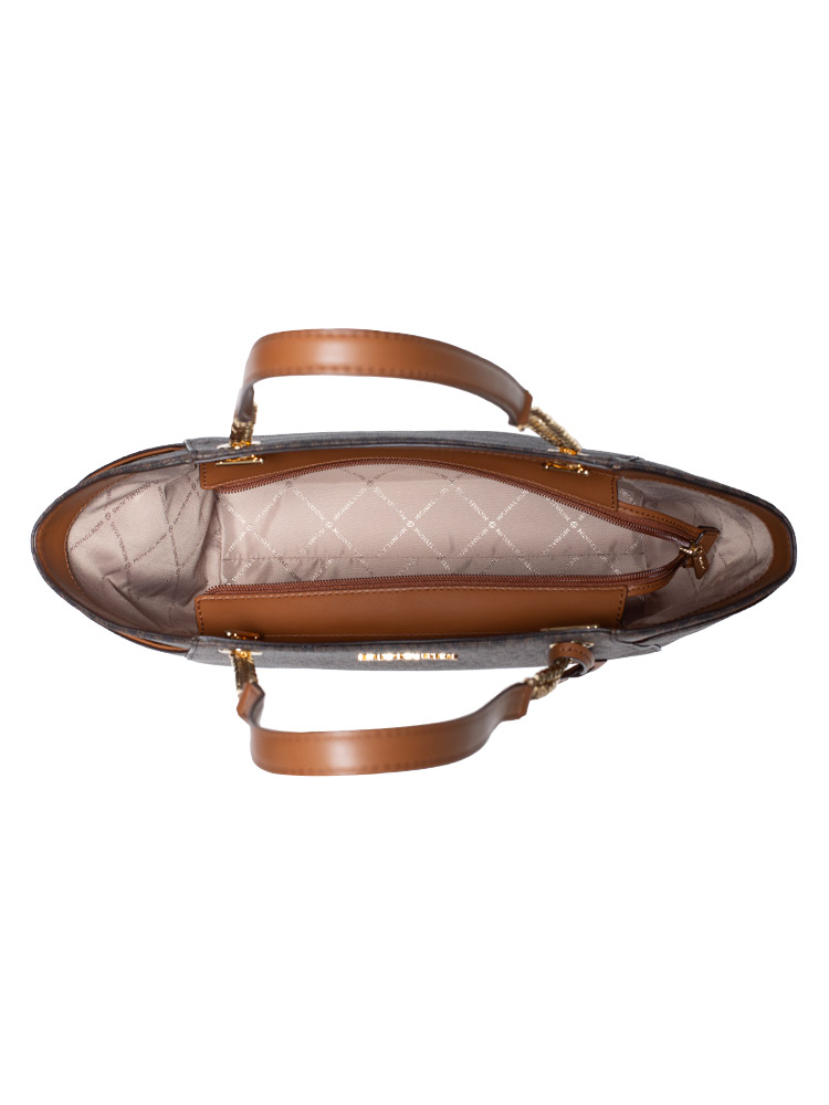 Signature Jet Set Travel Large Chain Shoulder Tote Brown