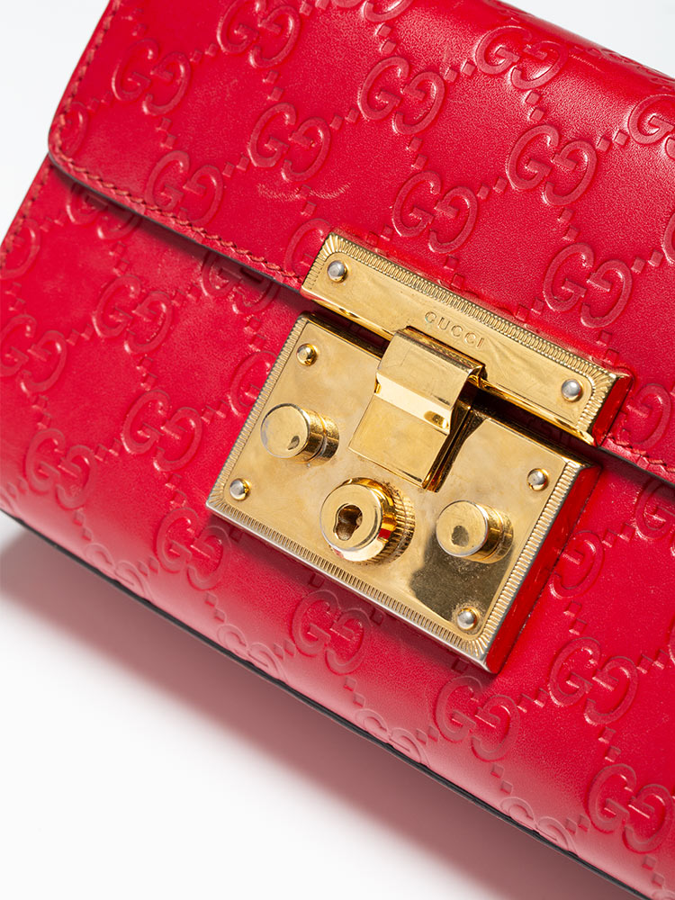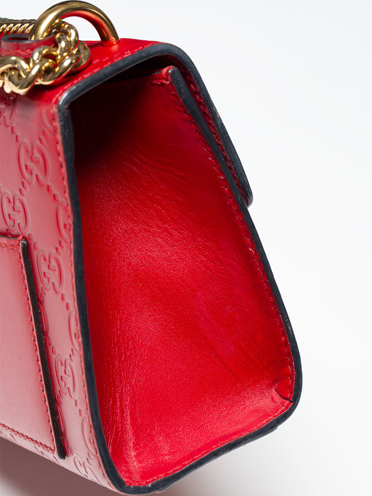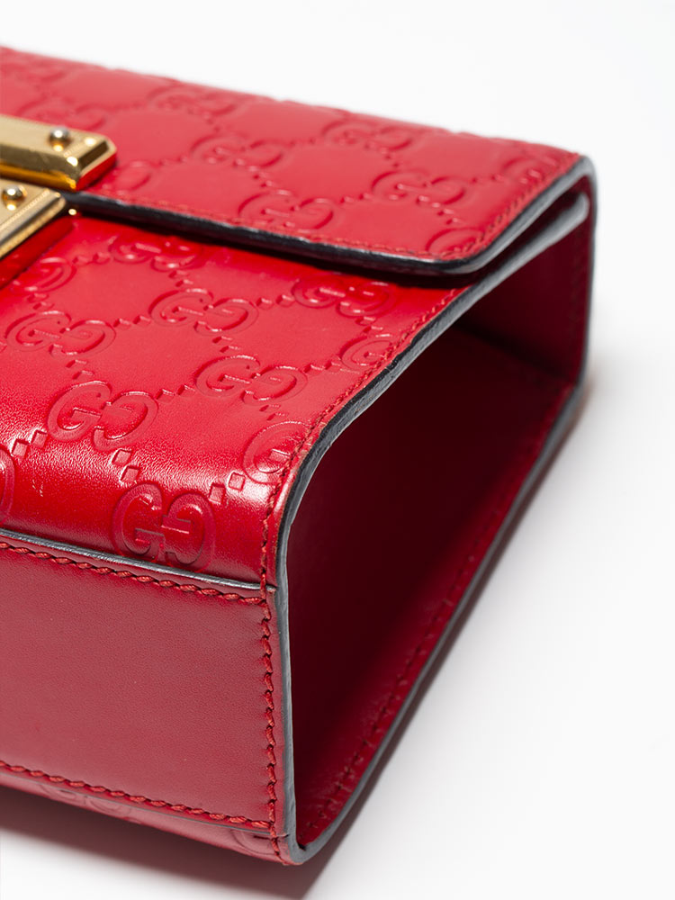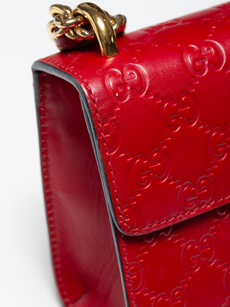 Guccissima Padlock Small Shoulder Bag Hibiscus Red