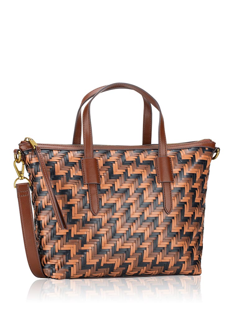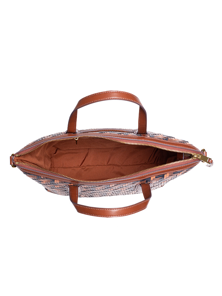 Made of polyurethane with polyester lining. The bag features an open zip closure, old english brass tone hardware, one zip pocket, two slip pockets, one rear eksterior slip pocket, adjustable and removable satchel wear