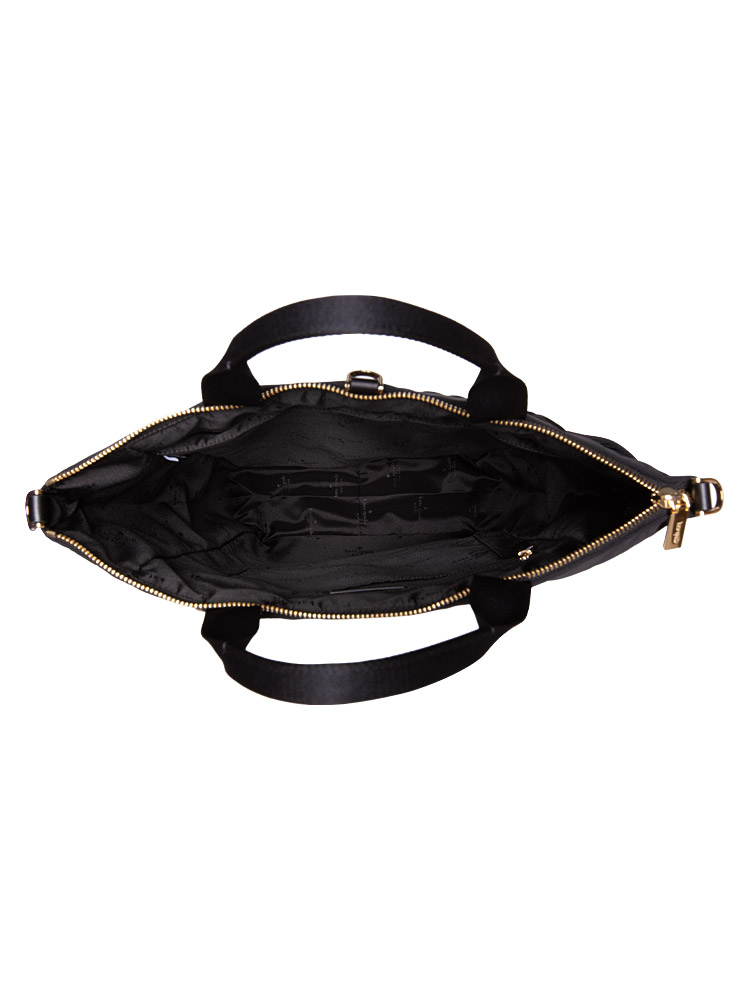Made of quilted fabric nylon. The backpack features a zip closure that opens to two way script logo lining with interior one zip pocket, two slip pocket and exterior one zip pocket at front, two side slip pockets.