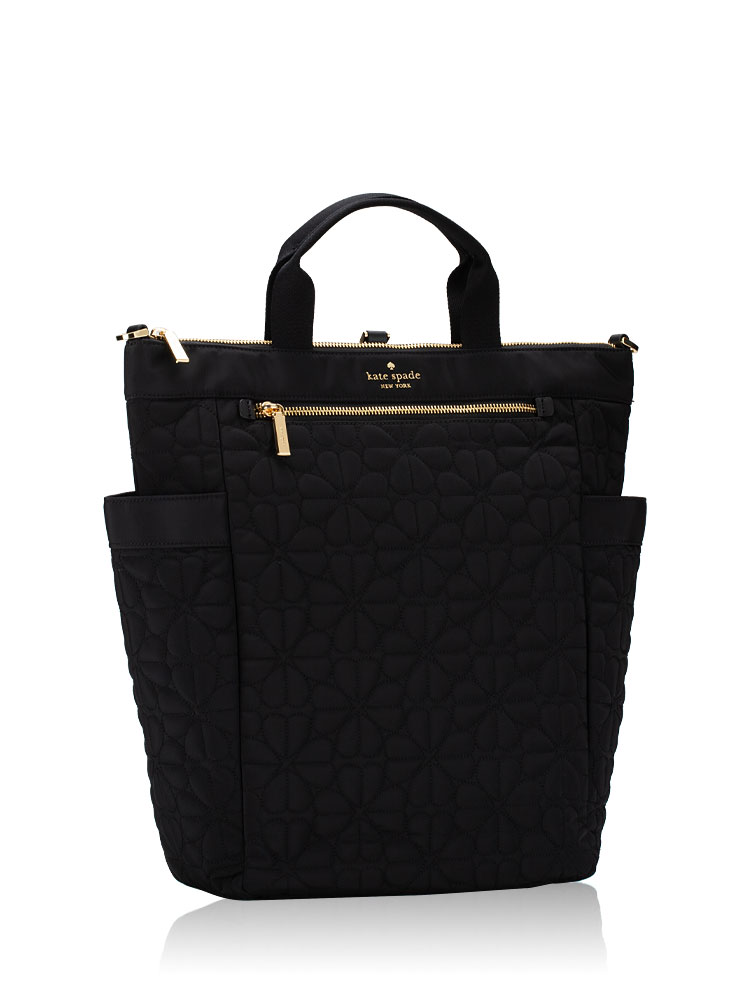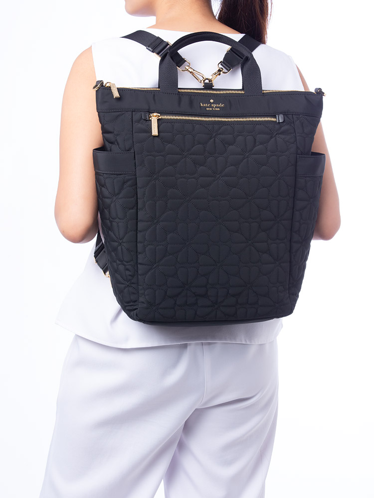 Flower Quilted Fabric Medium Convertible Backpack Black