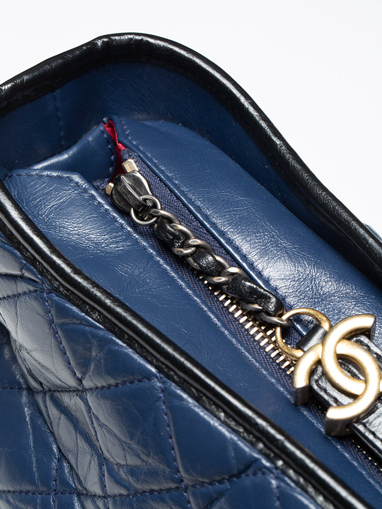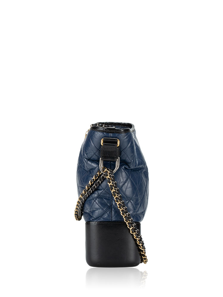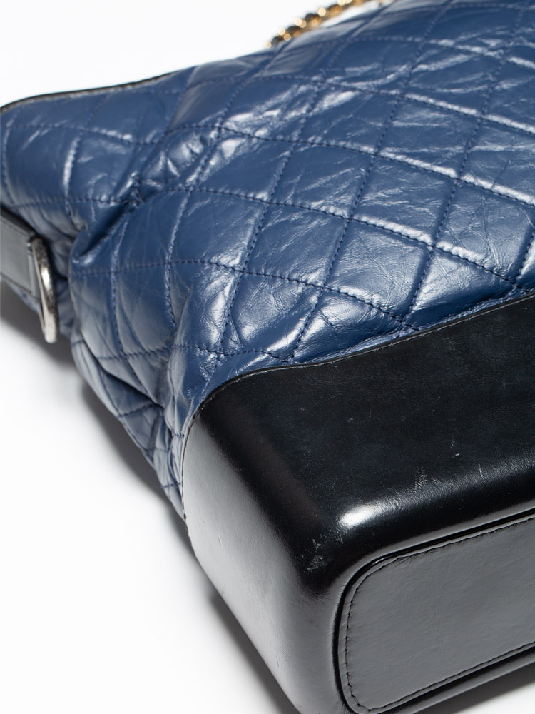 Aged Calfskin Gabrielle Large Hobo Black Navy