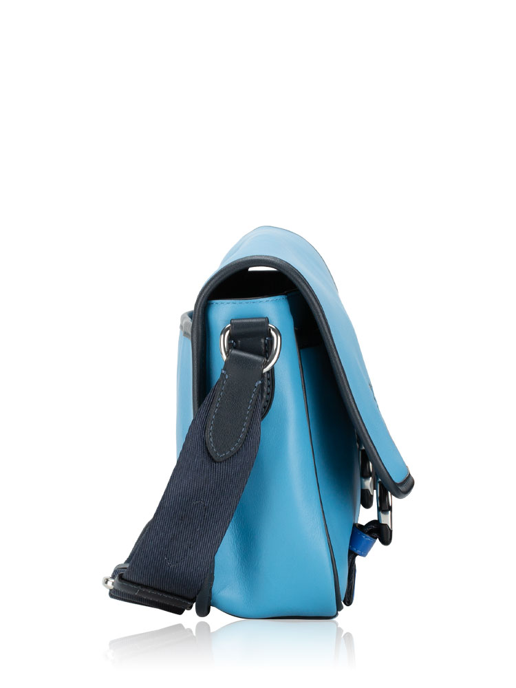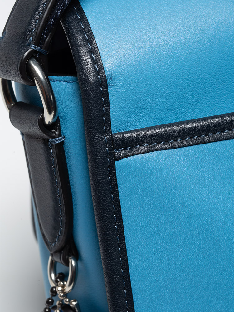 Made of Soft refined calf leather. The bag features a flap Speedclip closure that opens to fabric lining with one slip pocket, three small pockets, exterior two slip pocket at front, one slip pocket at back.