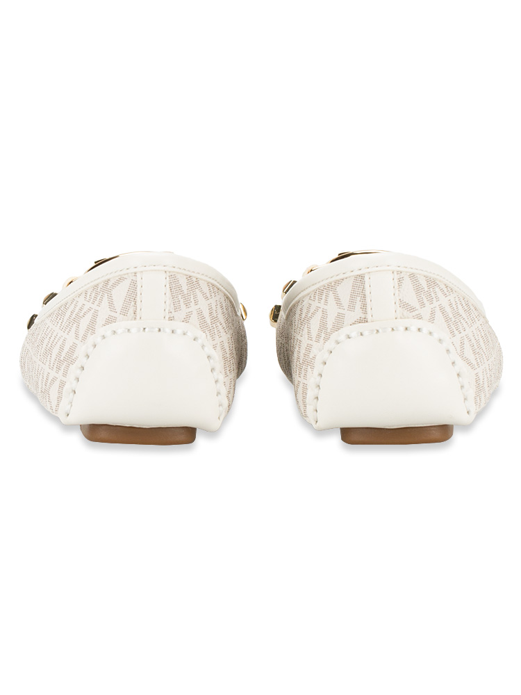 Crafted of signature coated canvas with leather trim. The shoe features closed round toe and MK metal logo medallion with studs on.