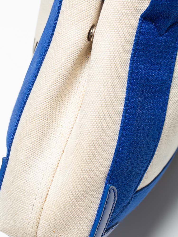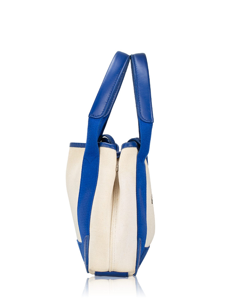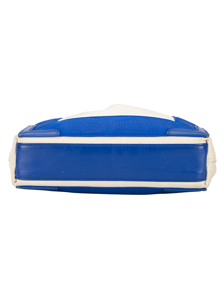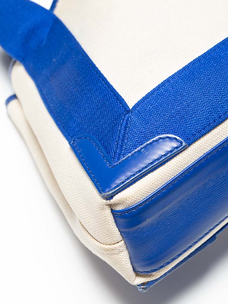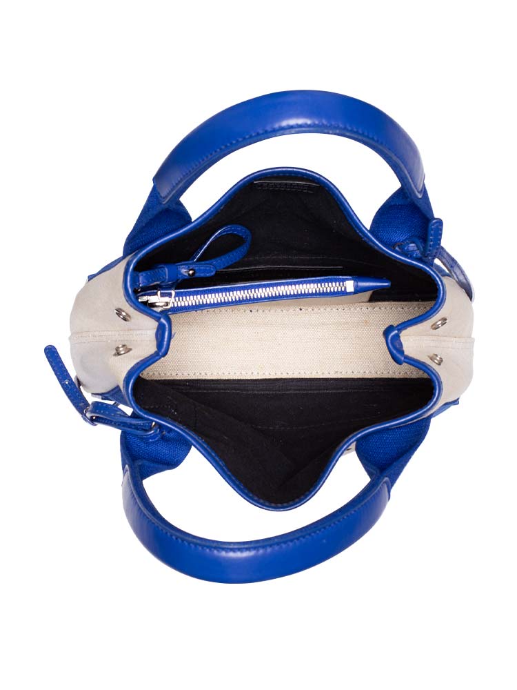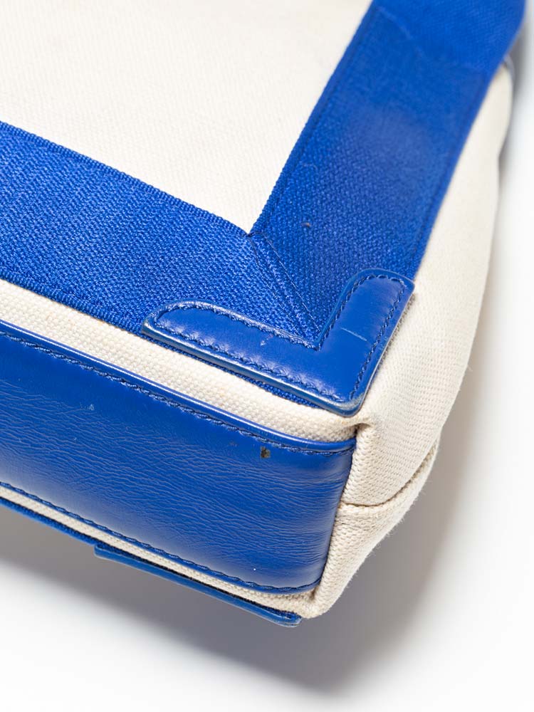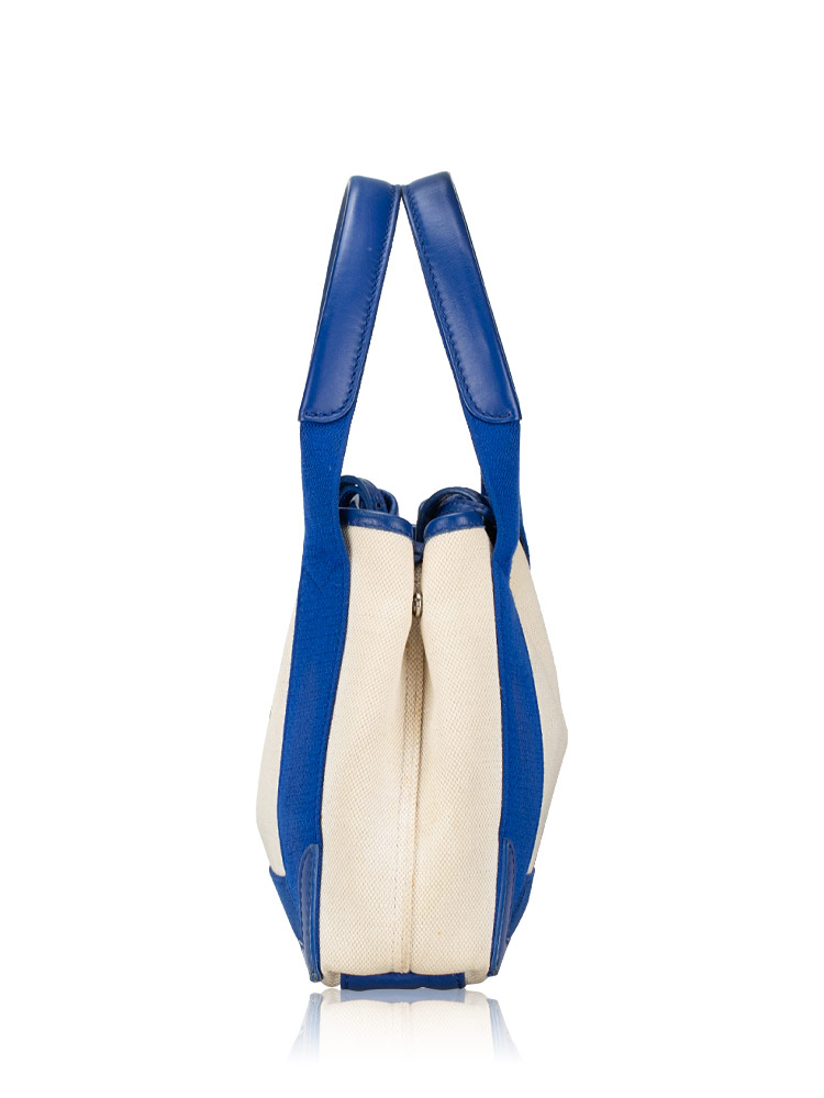 Crafted of a canvas and leather trim. This handbag features nylon accents that extend into top handles with leather grips and the BALENCIAGA logo. The top opens to a fabric interior with a matching companion pouch.