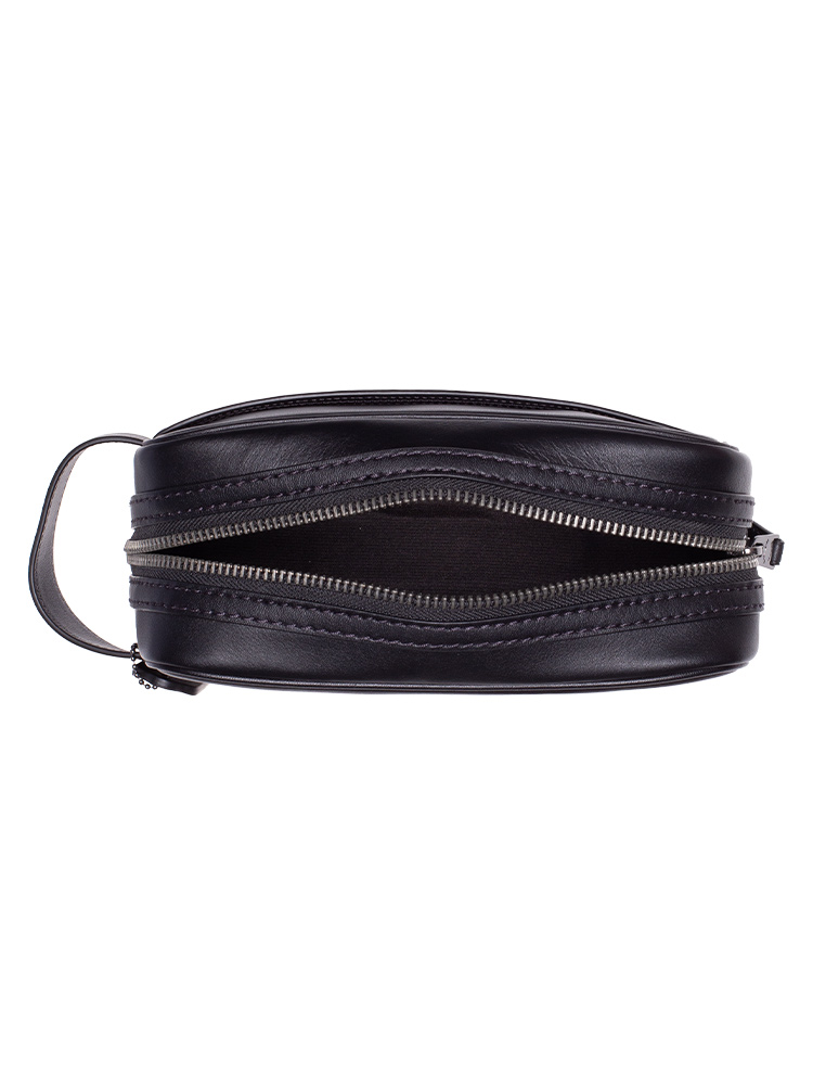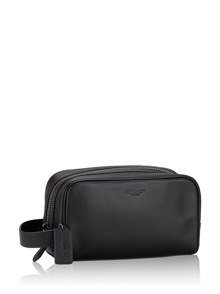 Made of smooth leather with fabric lining. The travel kit features an open zip closure, gunmetal tone hardware, one slip pocket and one rear eksterior slip pocket.
