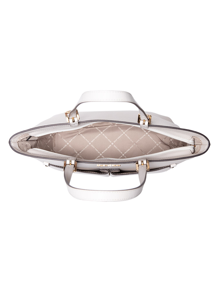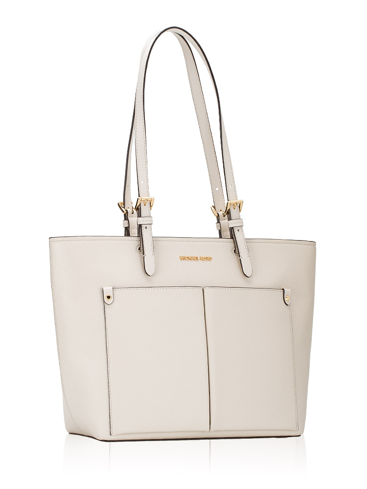 Jet Set Travel Leather Medium Double Pocket Tote Light Cream